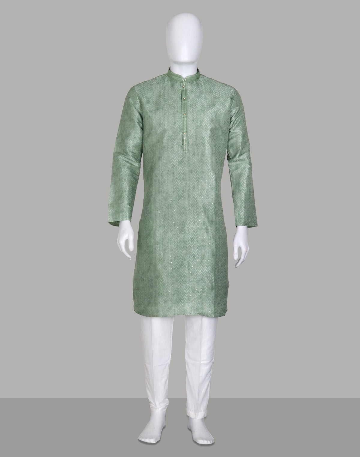 Light Pista Coloured Embellished work Self Design Jacquard Kurta Set
