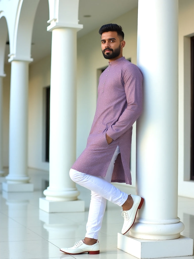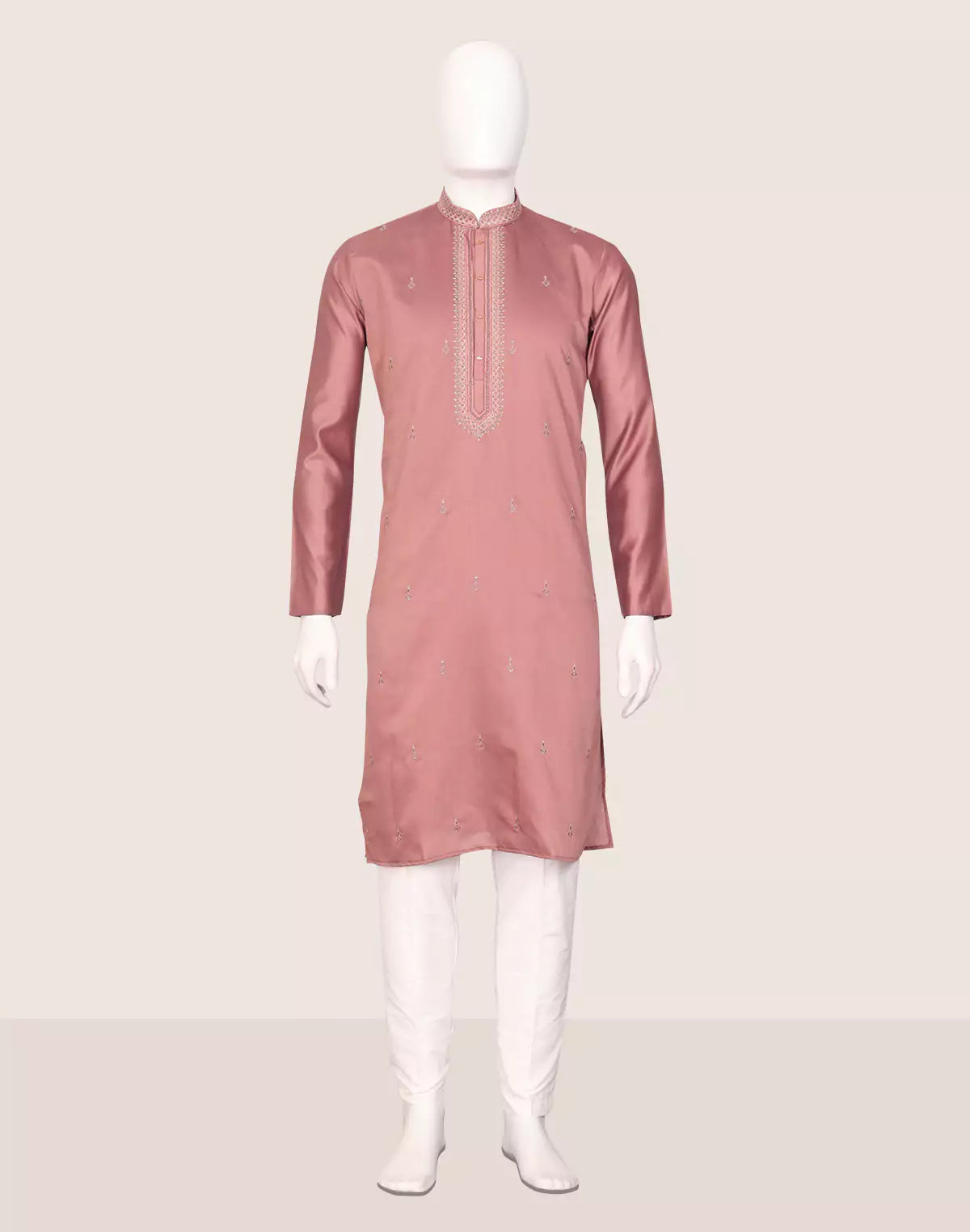 Light Onion Floral Milky Silk Stones work Kurta Pajama