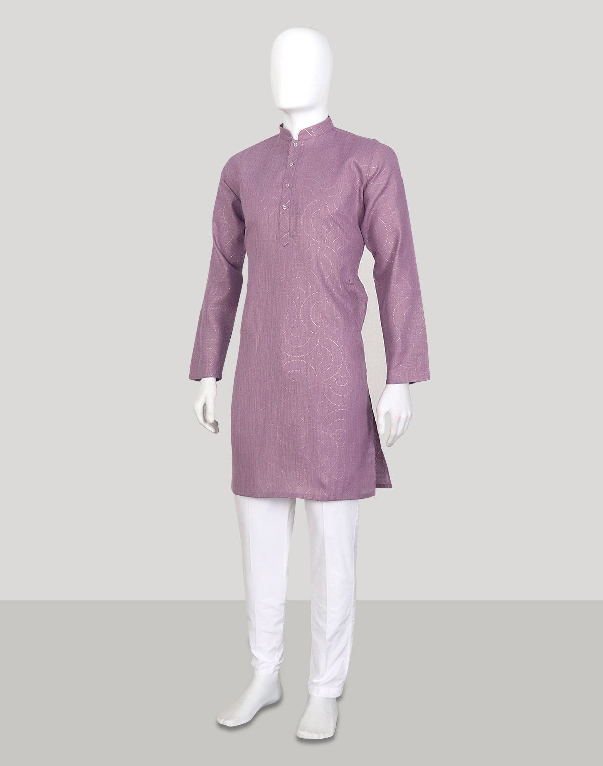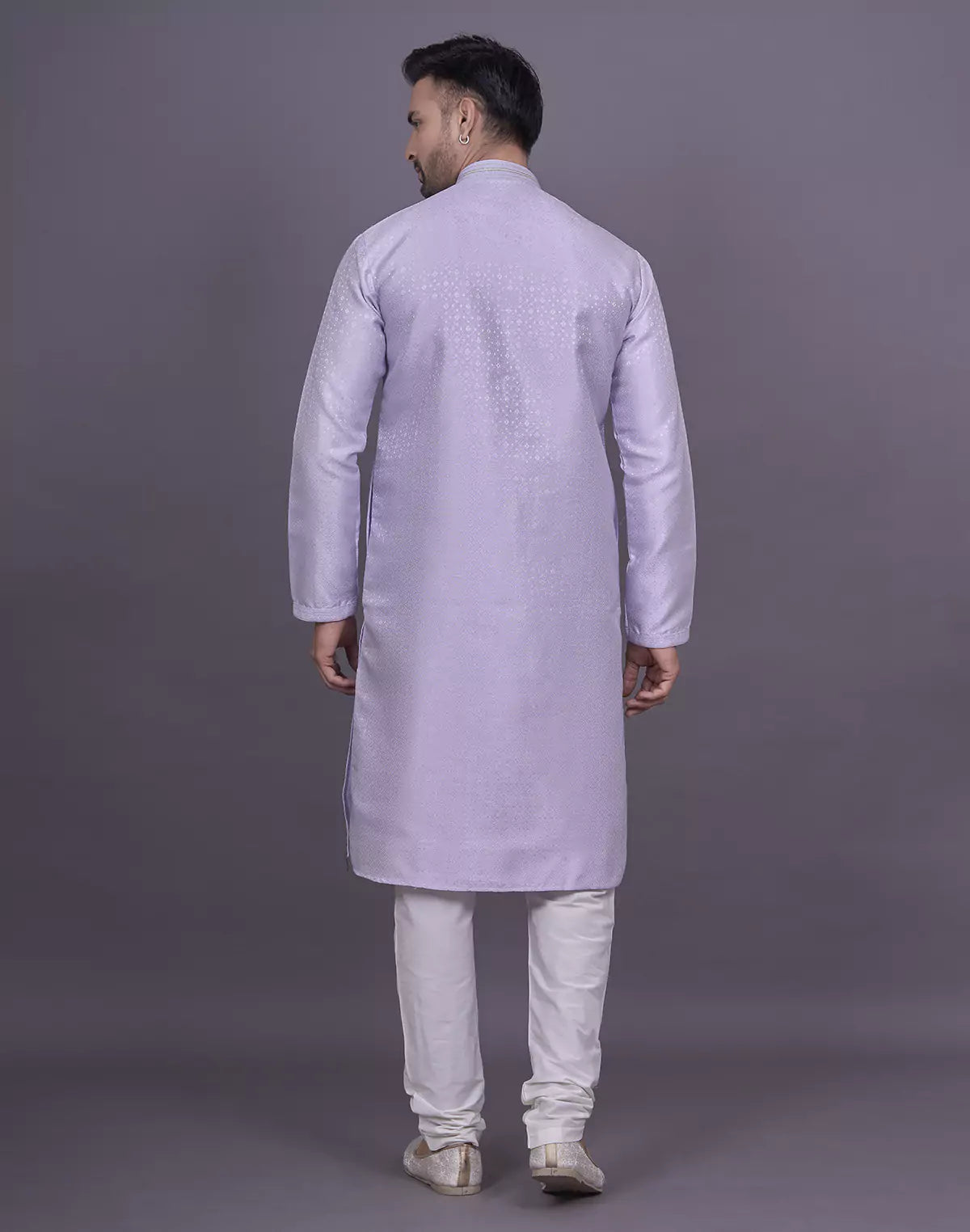 Lavender All Over Self Design Lucknowi Thread and Embroidery Kurta Pyjama Set