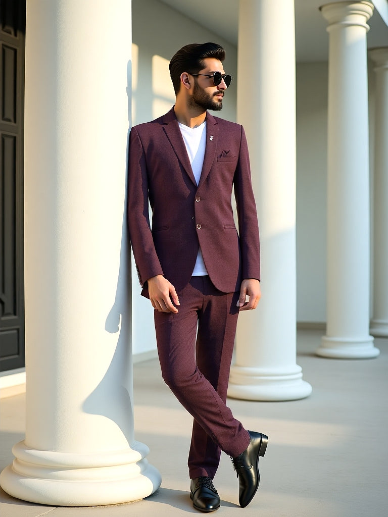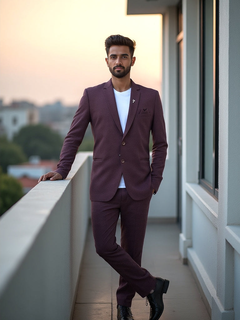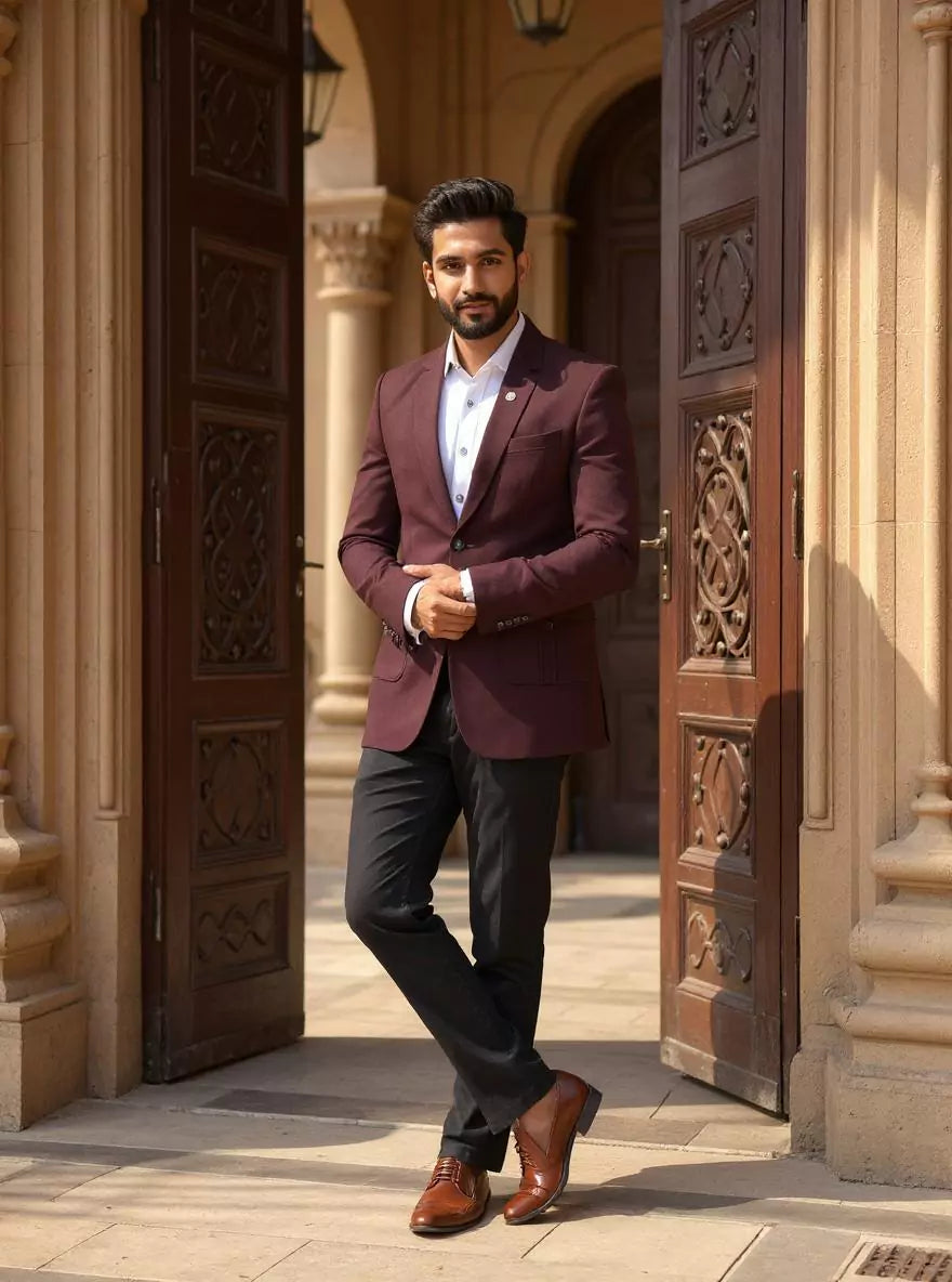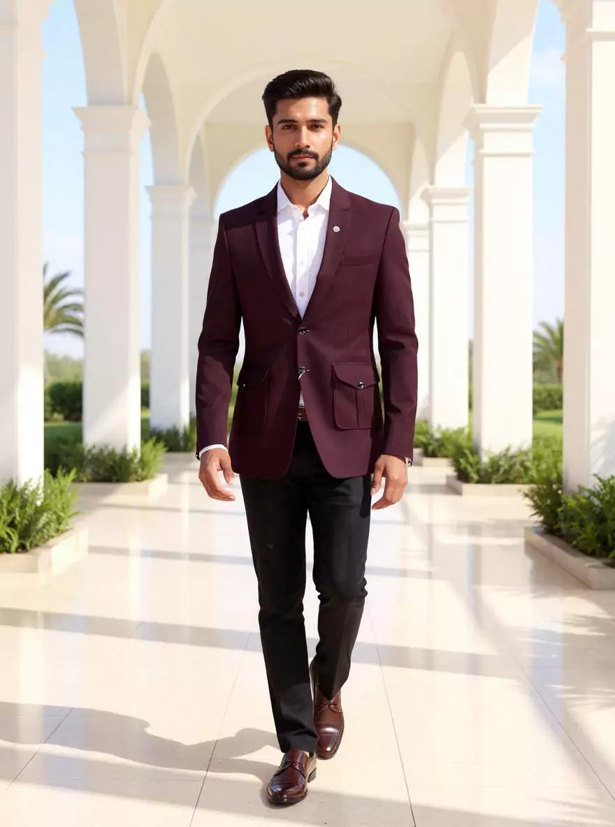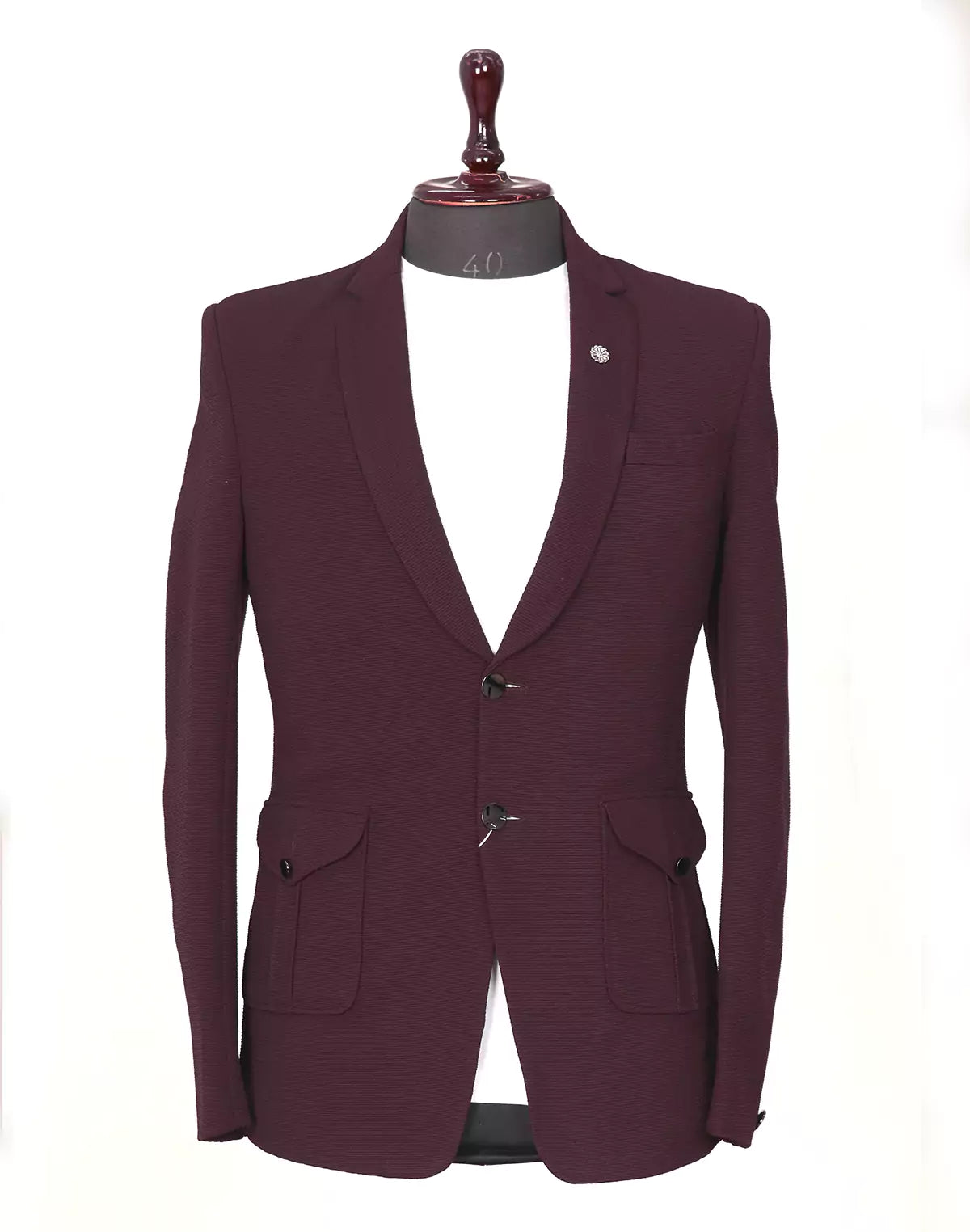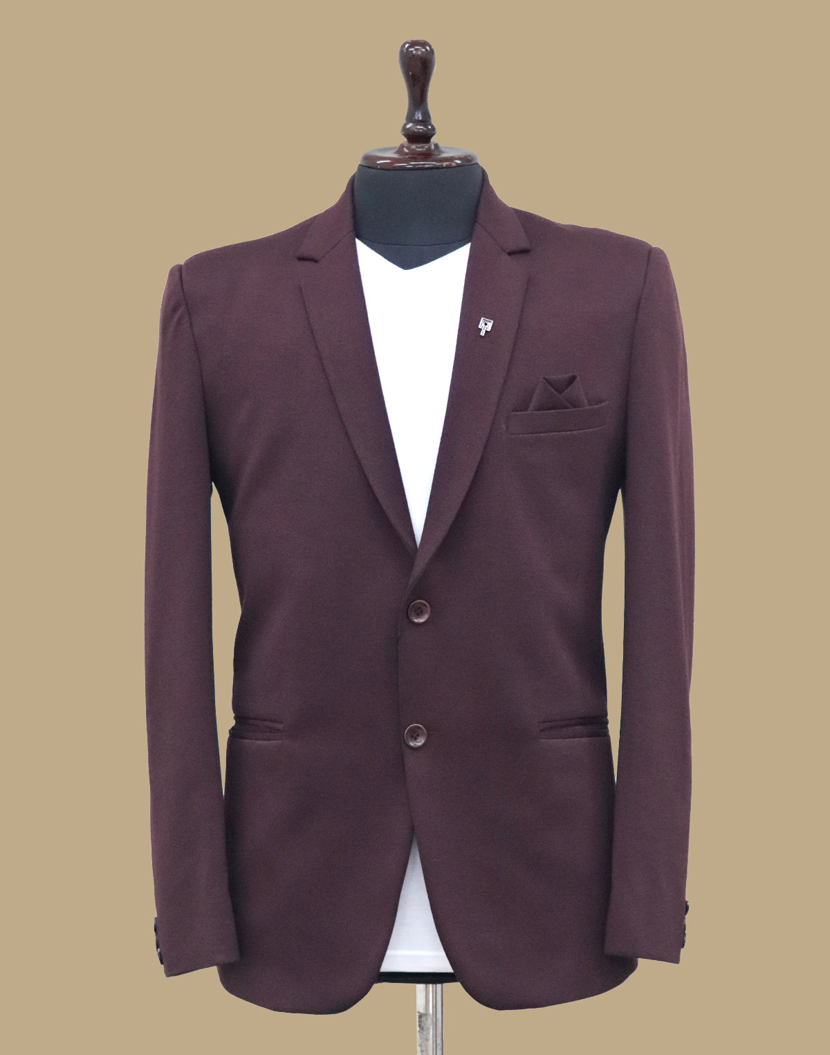 Maroon Solid Cotton with Lycra Fabric Blazer
