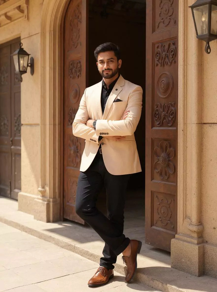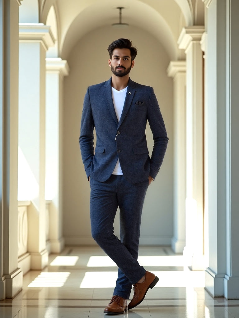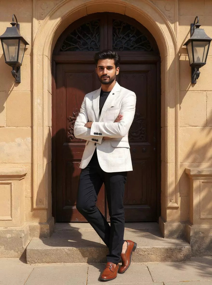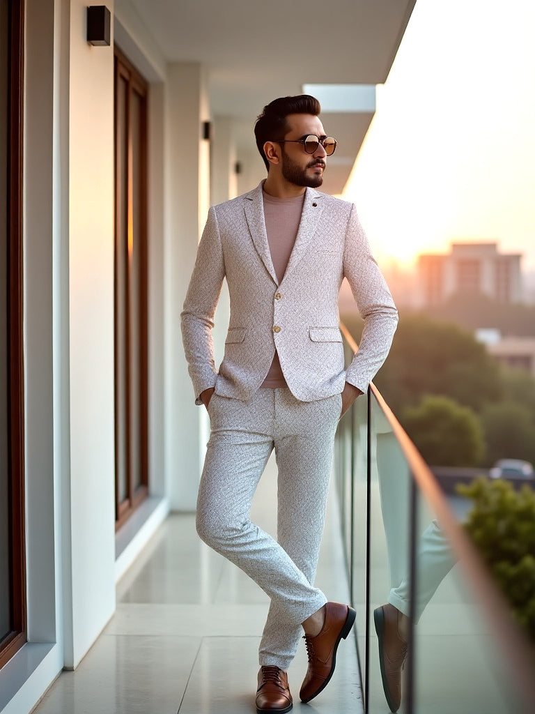 Chevron Imported Lycra Stretchable Giza Cotton Blazer