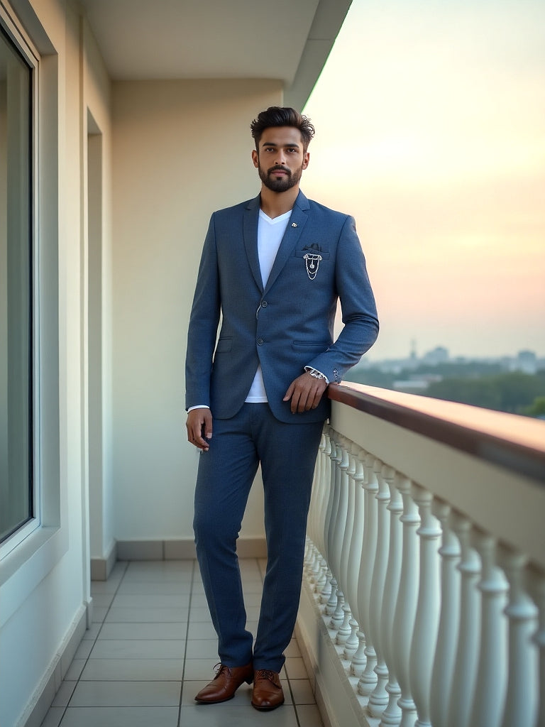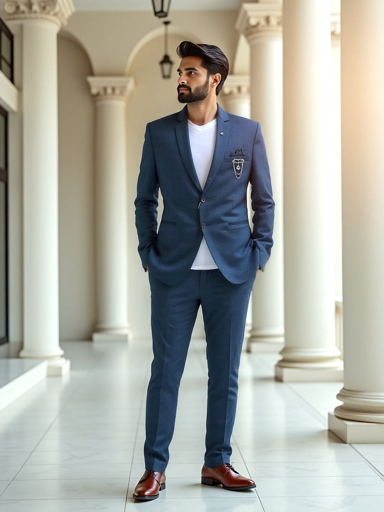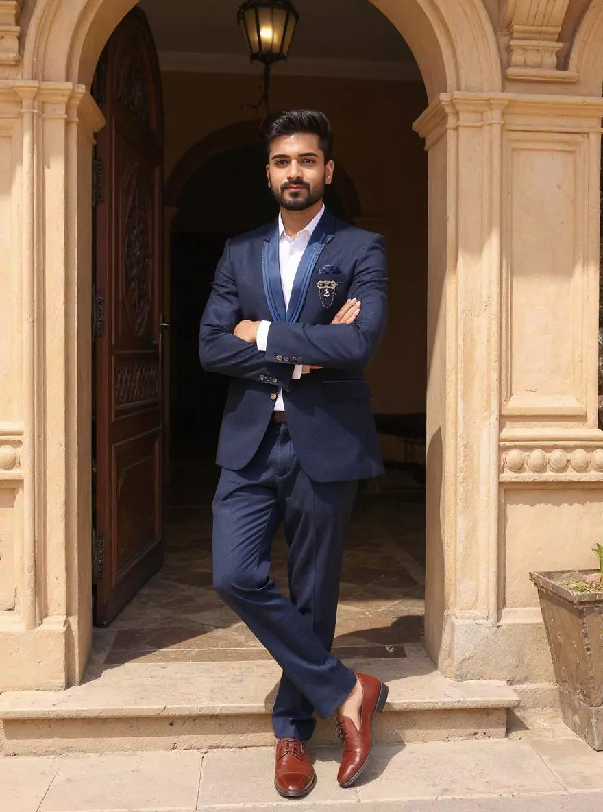 Classic Blue Color Imported Lycra Stretchable Giza Cotton Blazer