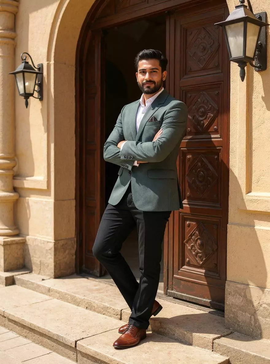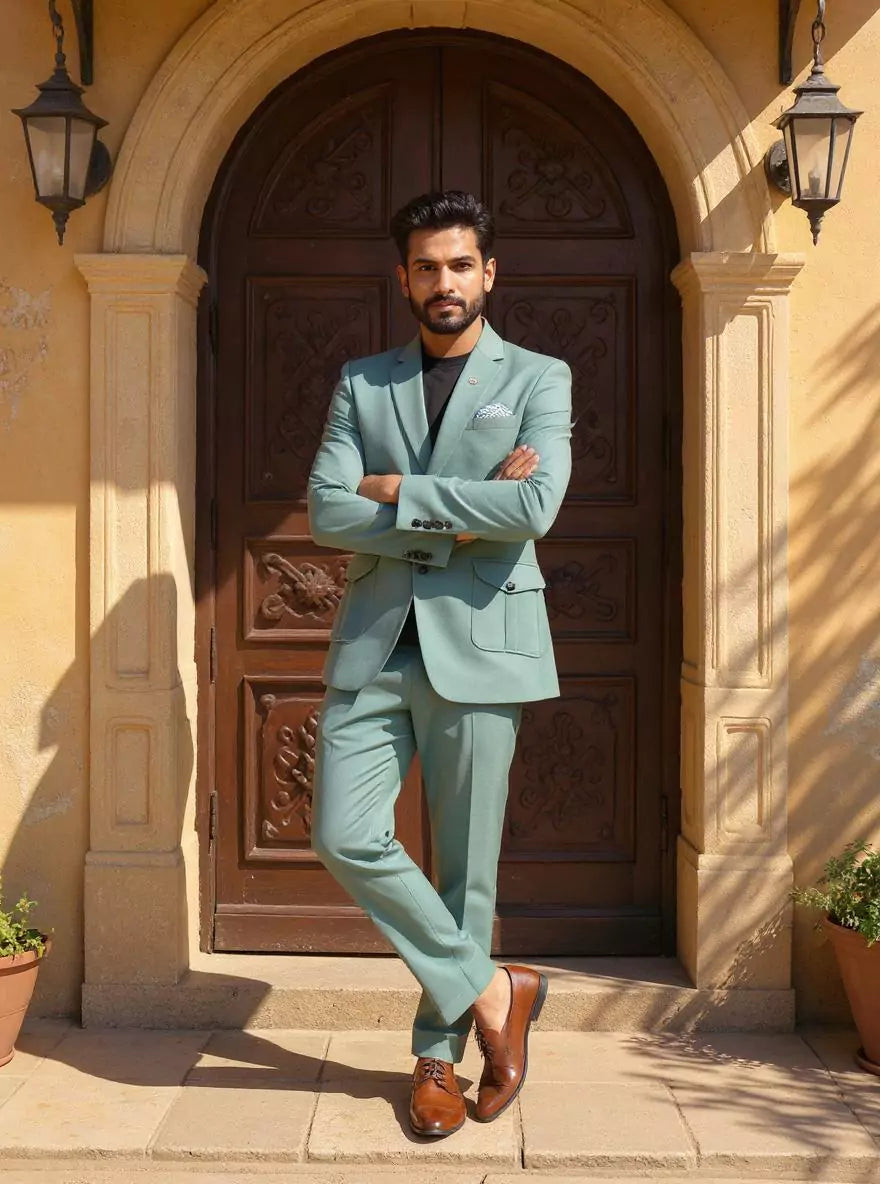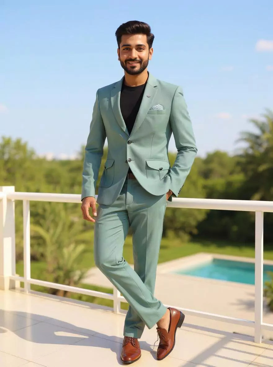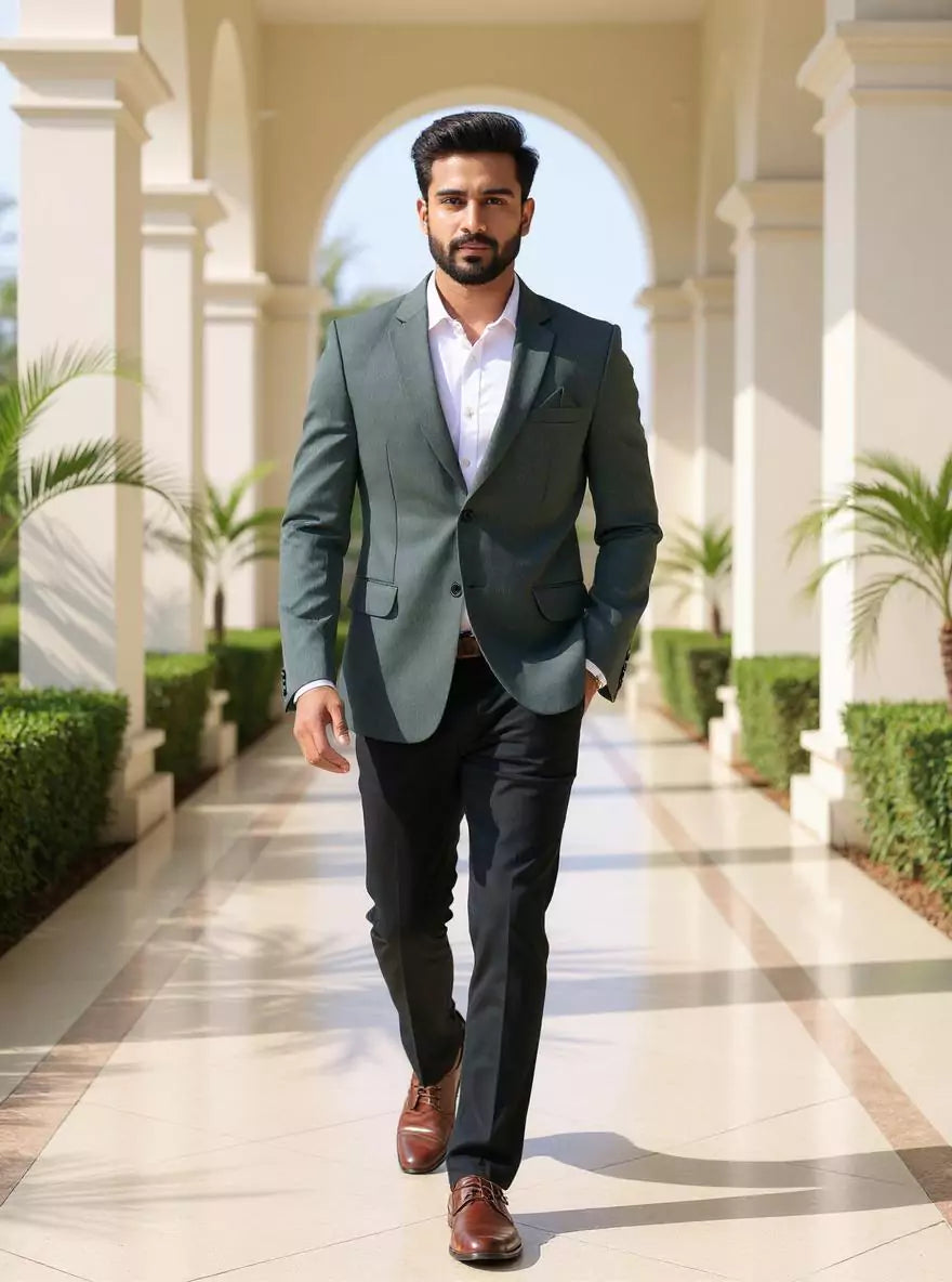 Stylish Green Imported Lycra Stretchable Giza Cotton Blazer