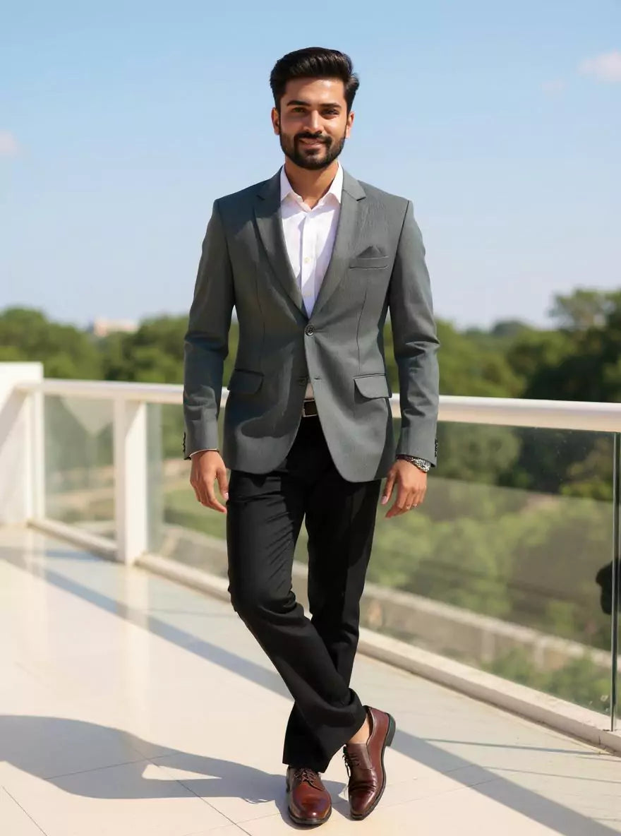 Light Grey Checks Imported Lycra Stretchable Giza Cotton Blazer