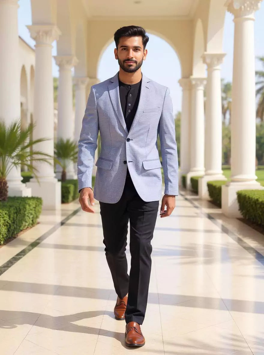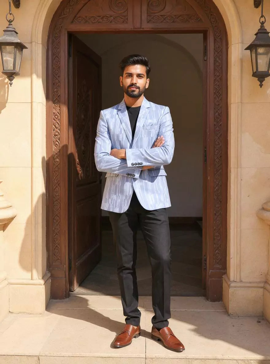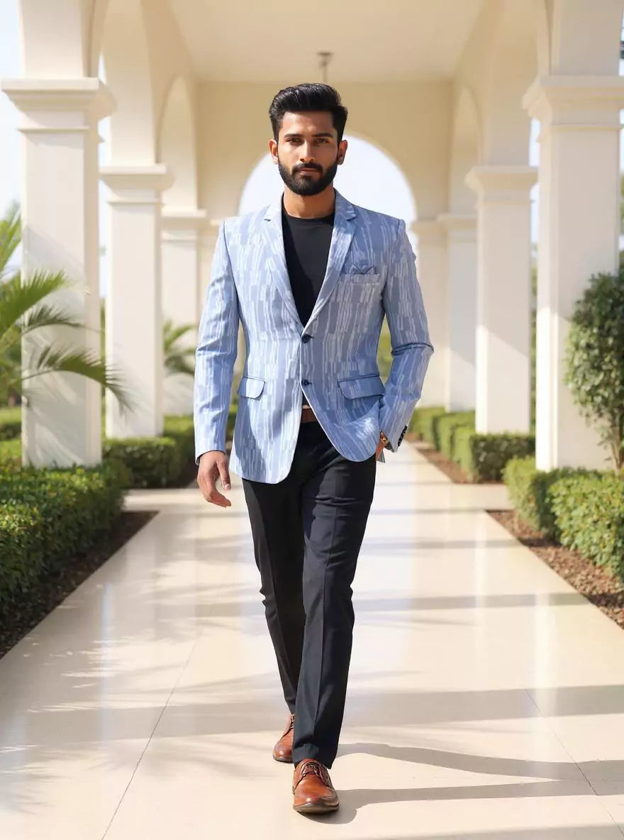 Light Blue Imported Lycra Stretchable Giza Cotton Blazer