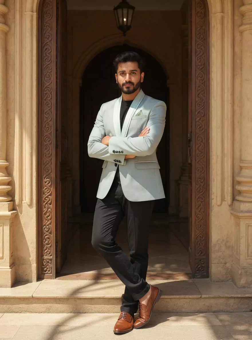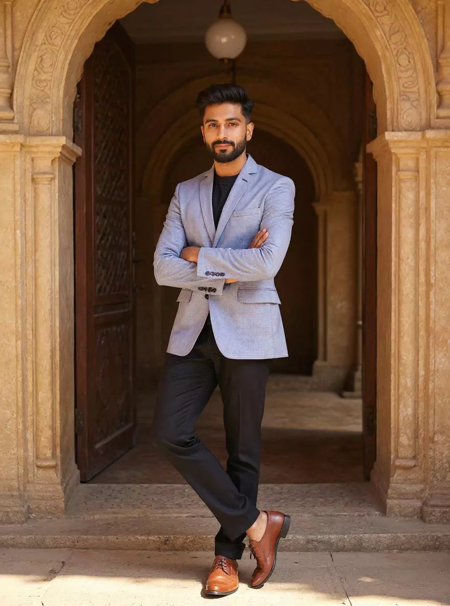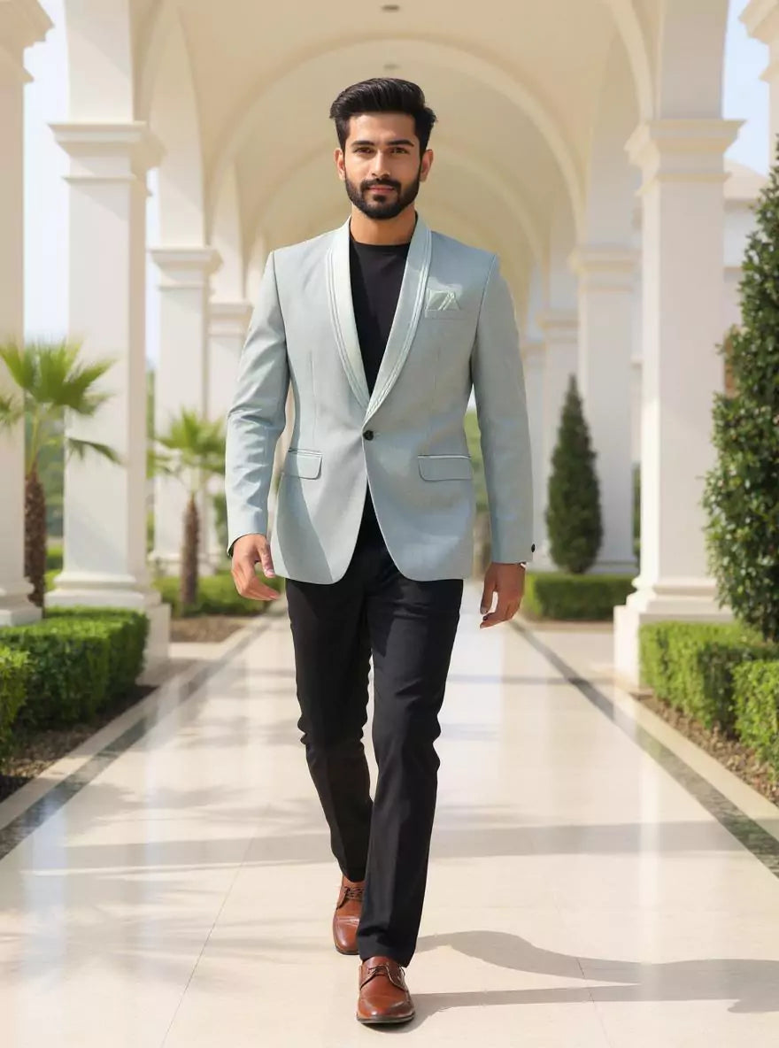 Light Blue Imported Lycra Stretchable Giza Cotton Blazer