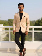 Stay stylish and sophisticated with our Fawn Polyester Terry Cotton Stripes Blazer. The classic striped design adds a touch of elegance to any outfit.