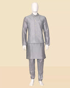 Grey Floral Thread with Embellished work Jacquard Kurta Jacket Set