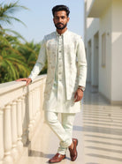 Indya Sky Embroidered Jacquard Floral Design Kurta Jacket Set