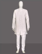 Men Kurta Set White Thread Embroidered Jacket