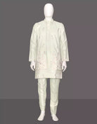 Multi Thread Embroidery Raw Silk Pista Colour Kurta Jacket Set