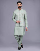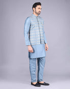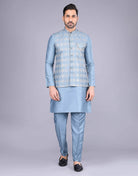 Silk Kurta & Stylish Sequence with Embroidery Work Jacket Set