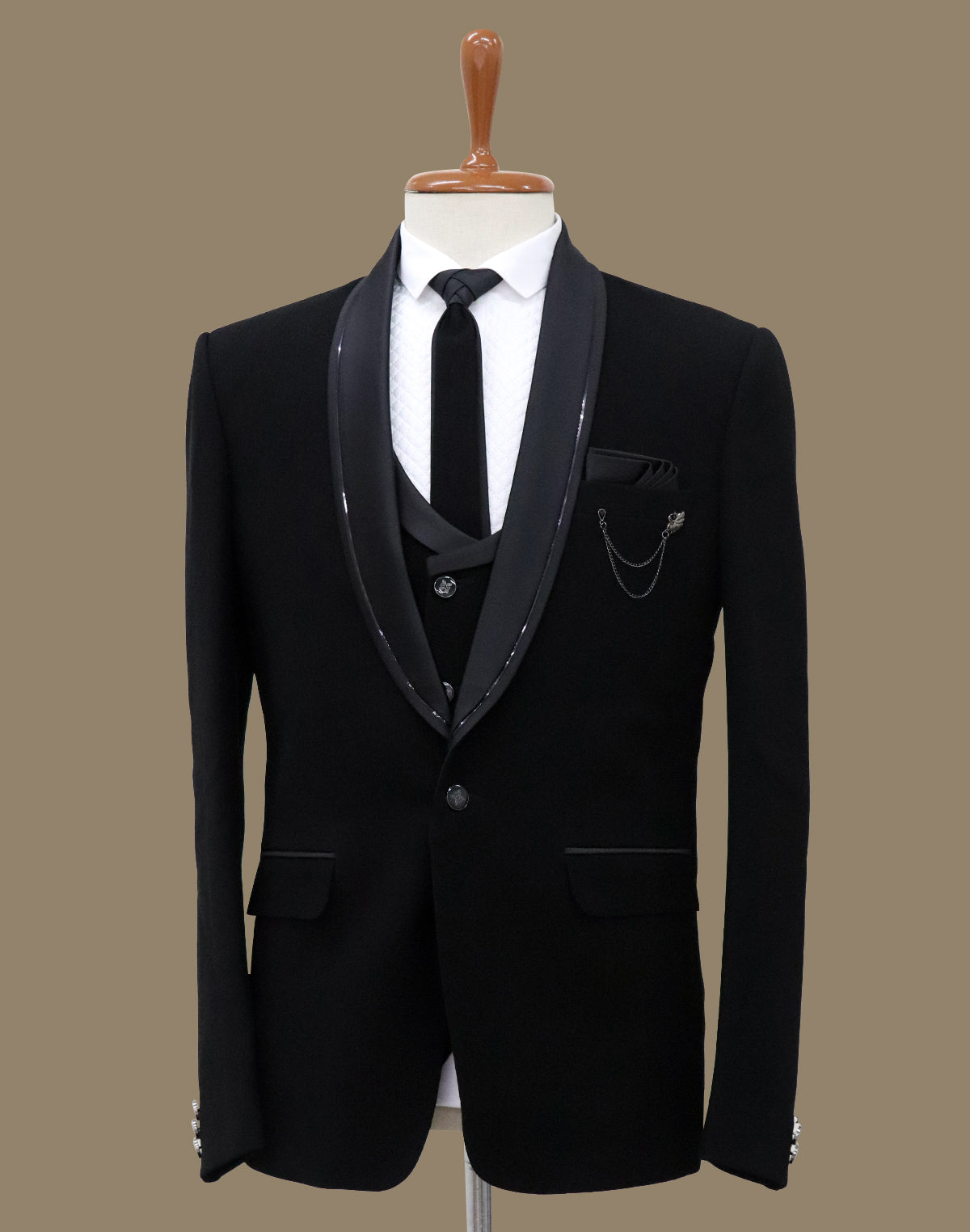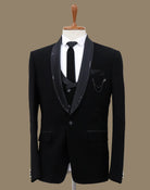 Black Polyester Terylene 5 Pc Tuxido Designer Suit