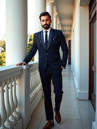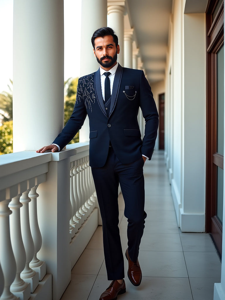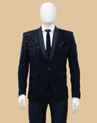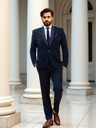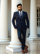 Navy Blue Polynosic Cutdana with Stone work 5 Pc Tuxido Designer Suit