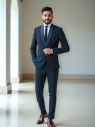 Navy Blue Self Design Polynosic Thread work 5 Pc Suit