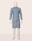 Refined grey cotton kurta in subtle self-design, paired with off-white pajama—understated elegance meets everyday comfort, perfect for casual gatherings or mellow festivities.