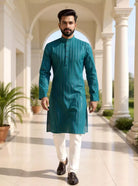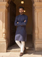 Striped Patterned Cotton Kurta Pajama with Thread work
