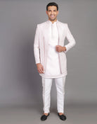 All Over Raw Silk Floral Embroidery Work Indo Open Jacket Set With Dupatta