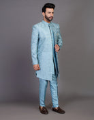 Raw Silk All Over Floral Embroidery Work Indo Open Jacket Set