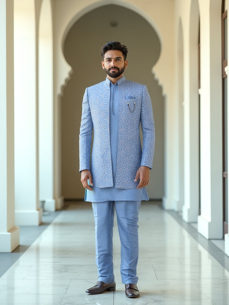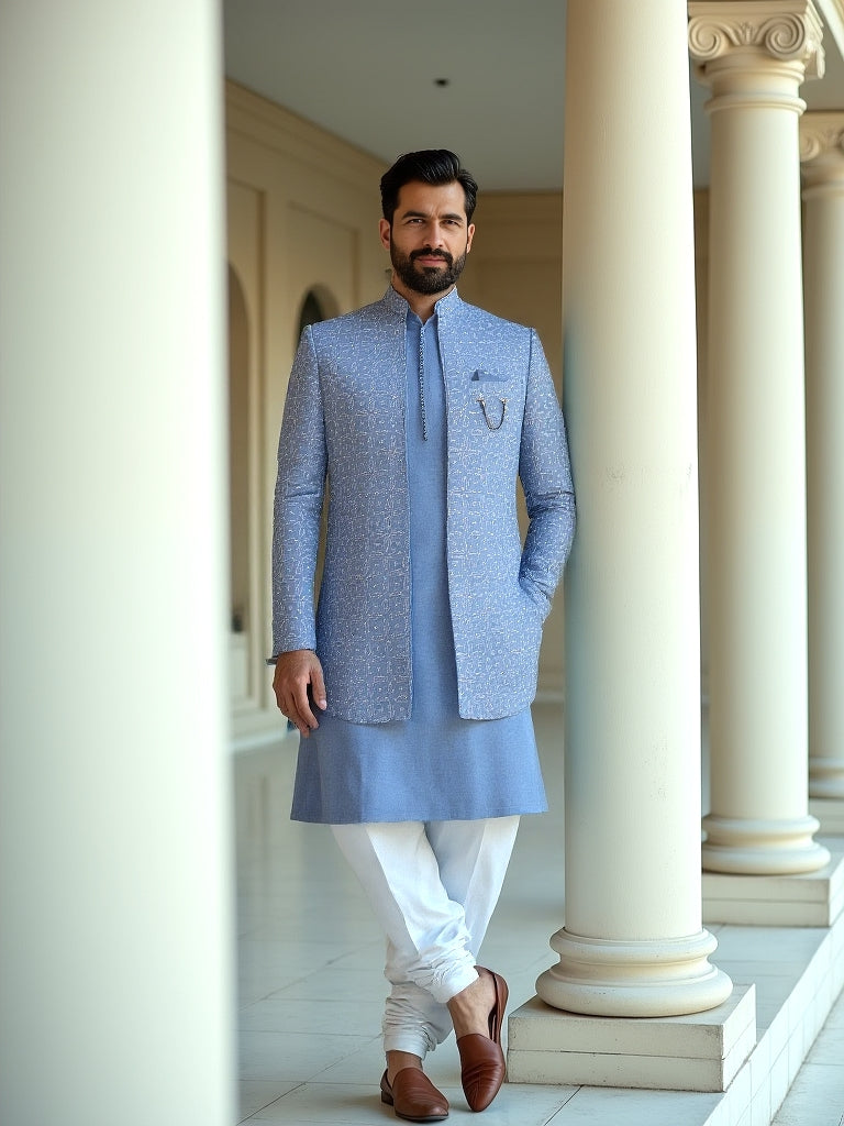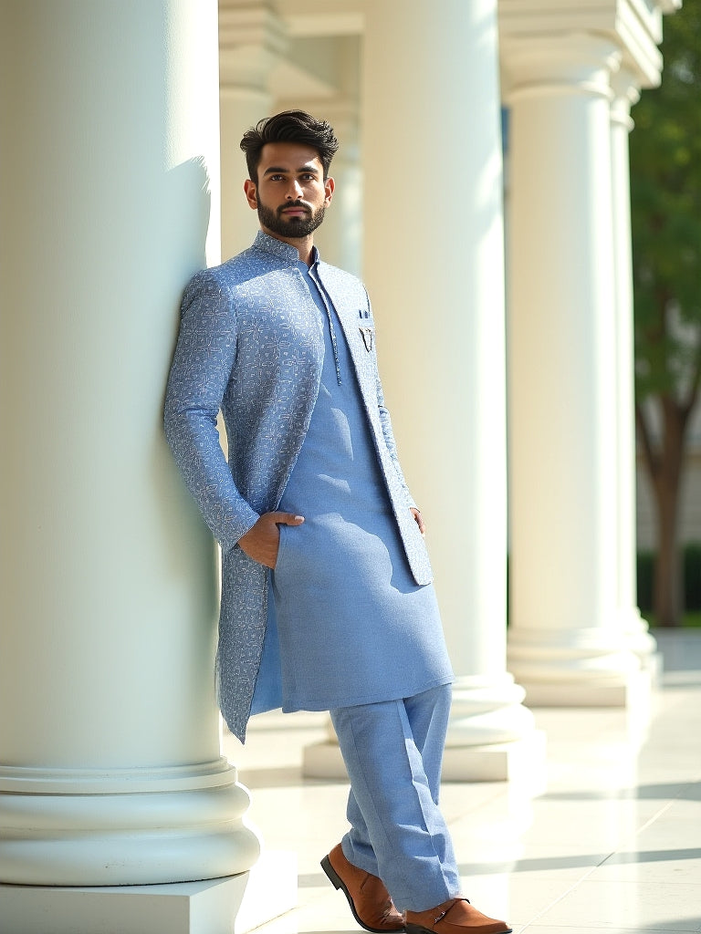 FABRIC:  Jacket-Milky Silk Kurta- Milky Silk Bottom-Cotton