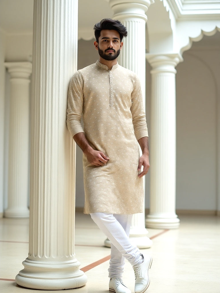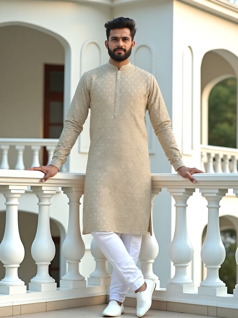 Feel confident and stylish in our exquisite weaving jacquard kurta with off white Pajama. This versatile ensemble is perfect for weddings, festivals, or any celebration where you want to stand out in the crowd.