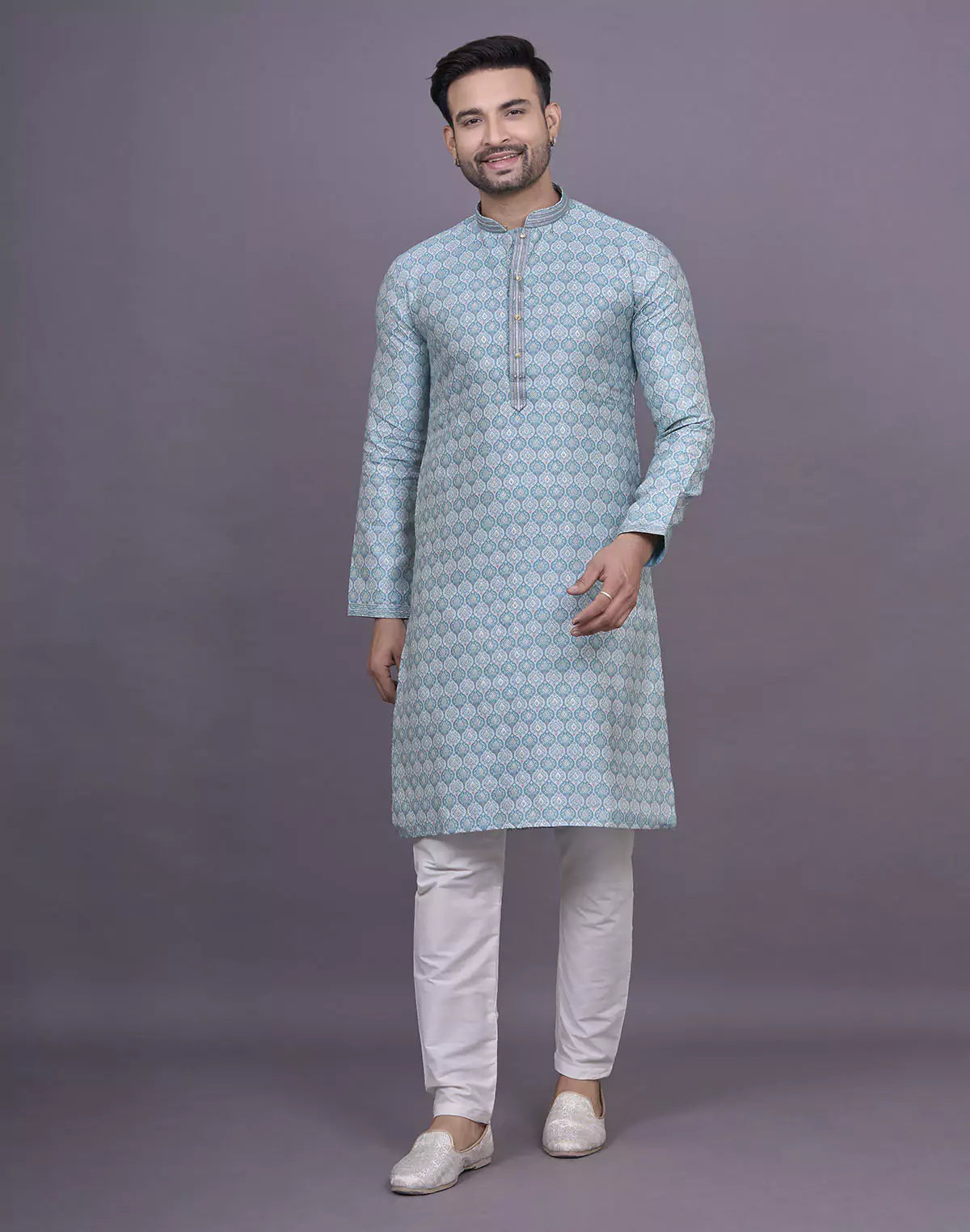 Firozi Floral Weaving Design Raw Silk Kurta Pyjama Set