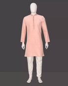 Peach Self Design Jacquard Party Wear Kurta Pyjama Set
