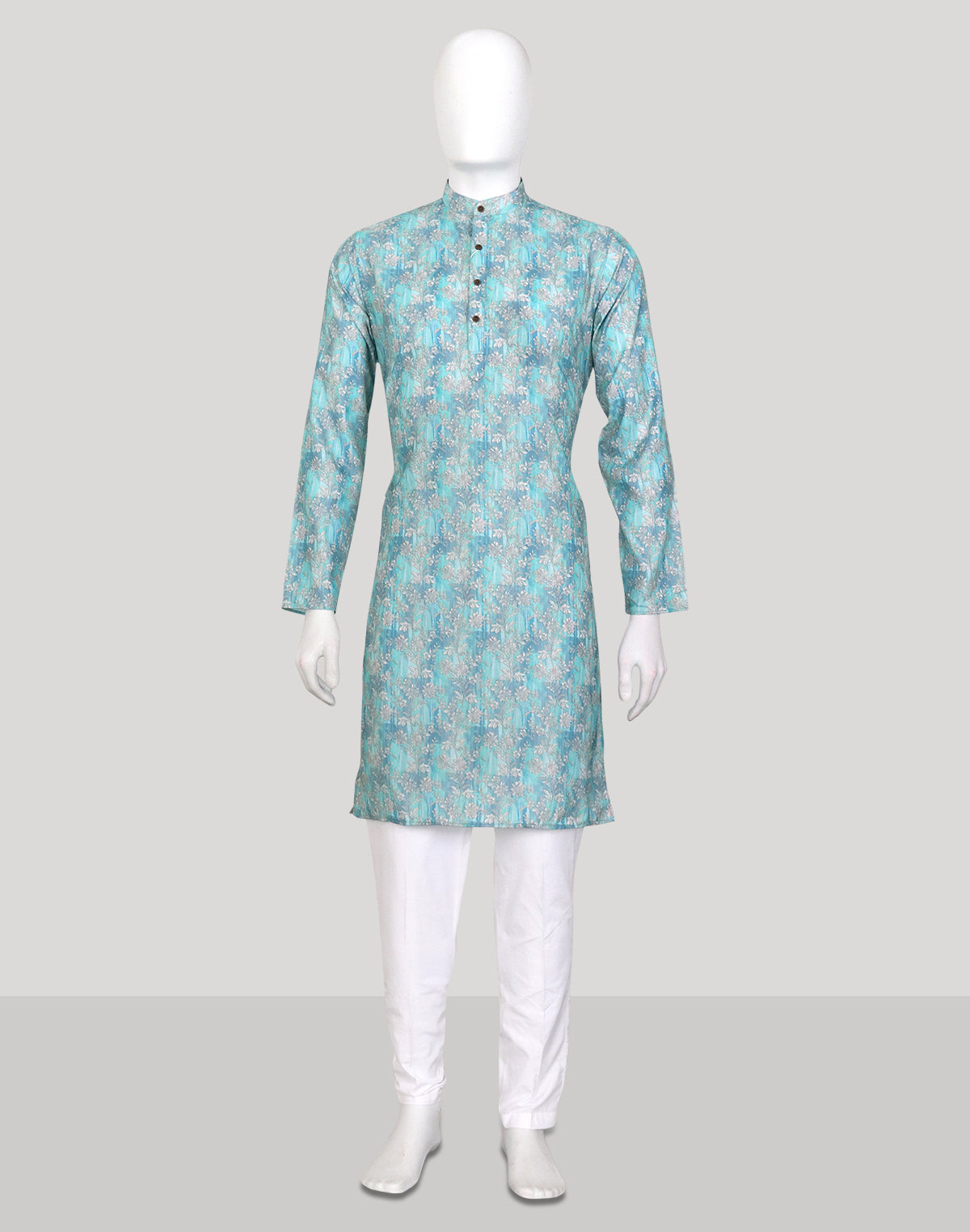 Aqua Green Brocade Zari Booti's Jacquard Kurta Pyjama