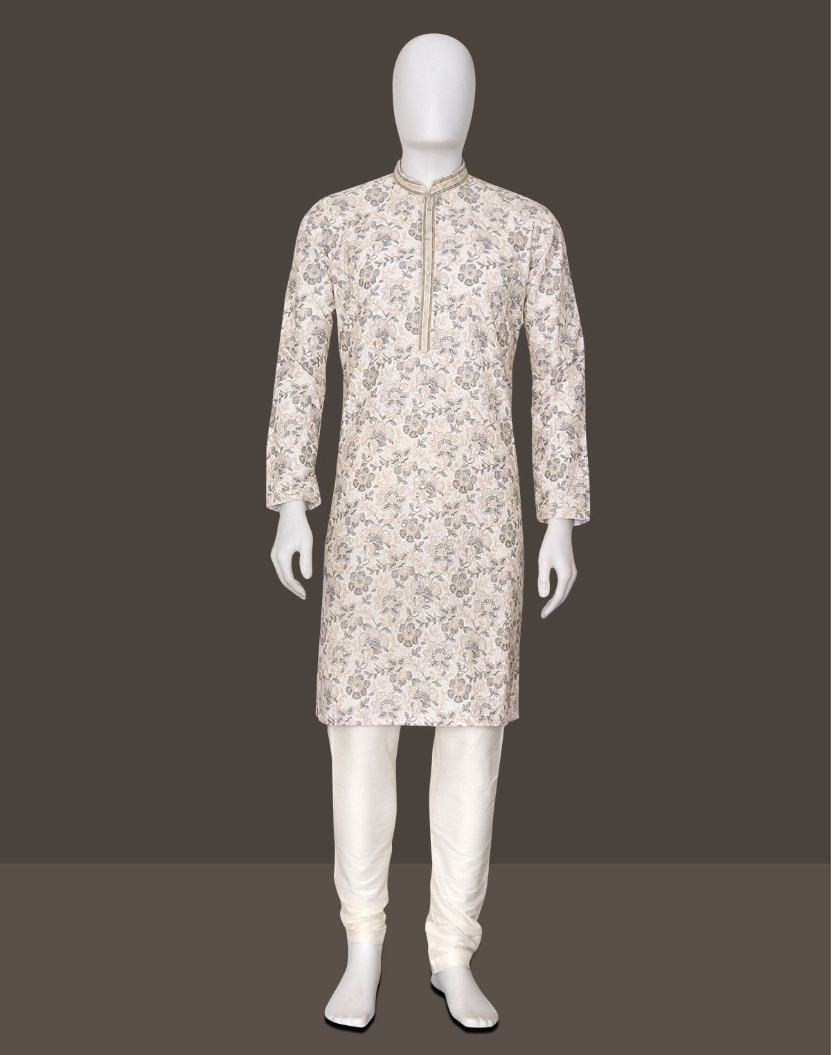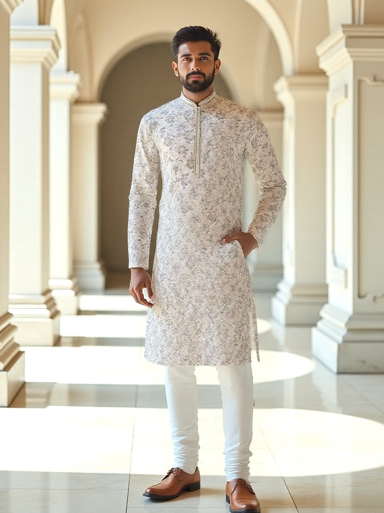 Light Grey Floral Brocade Design Jacquard Kurta Pajama