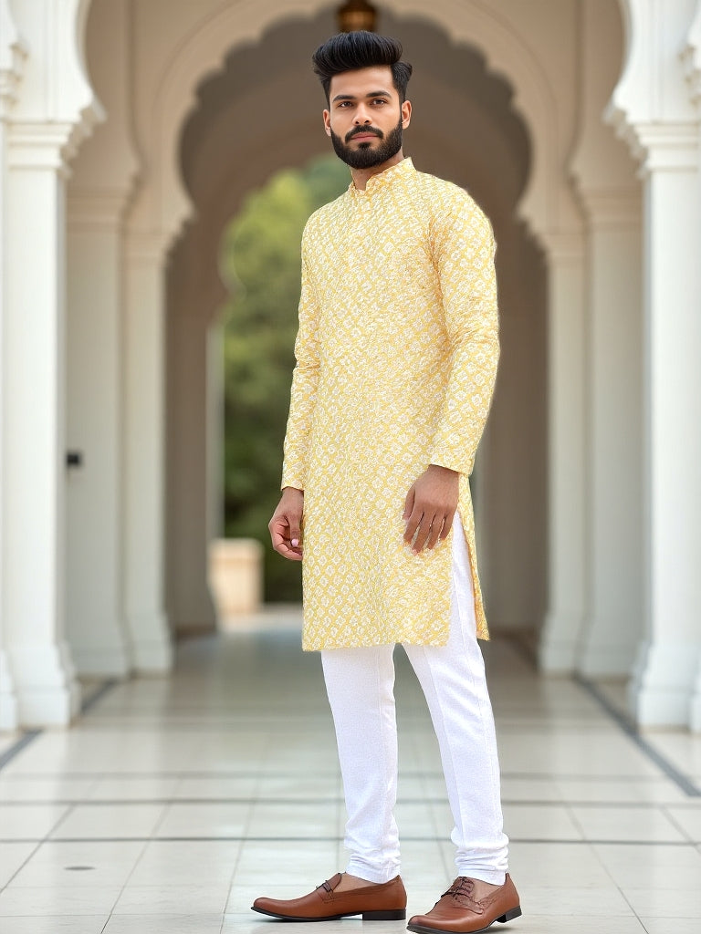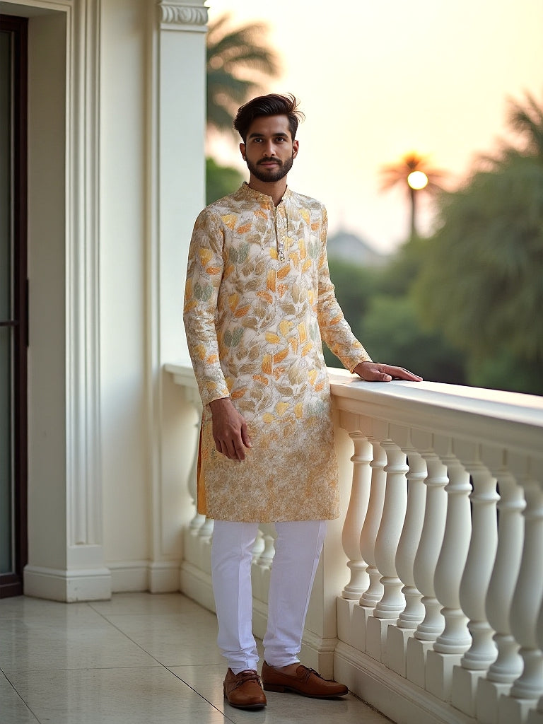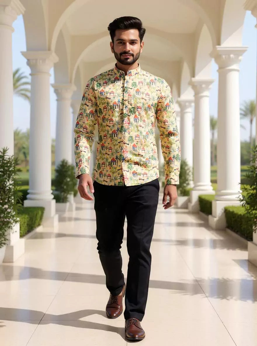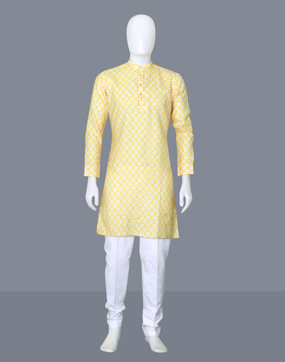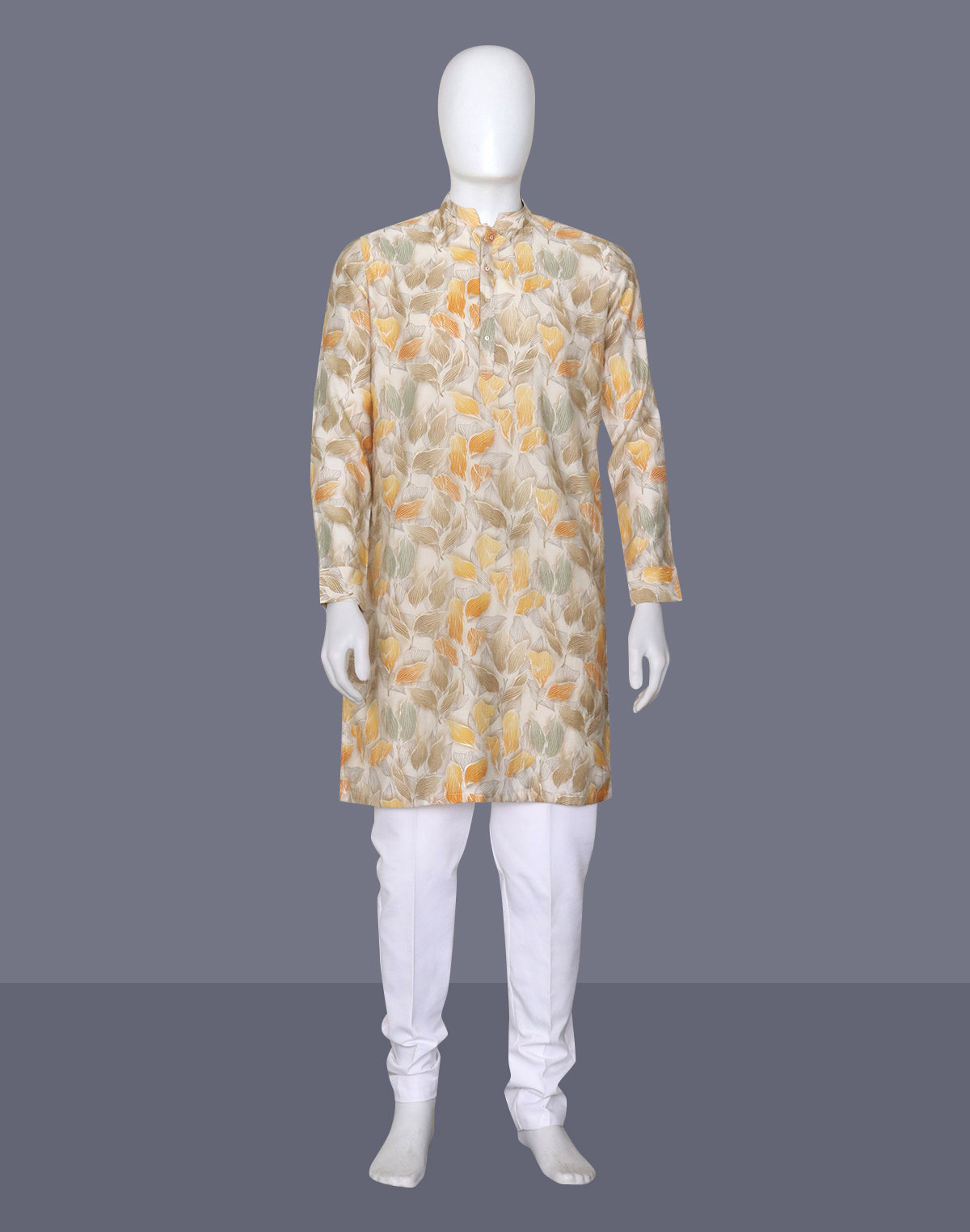 Mustard Botanical with Novelty Patterned Glaxo Cotton Short Kurta