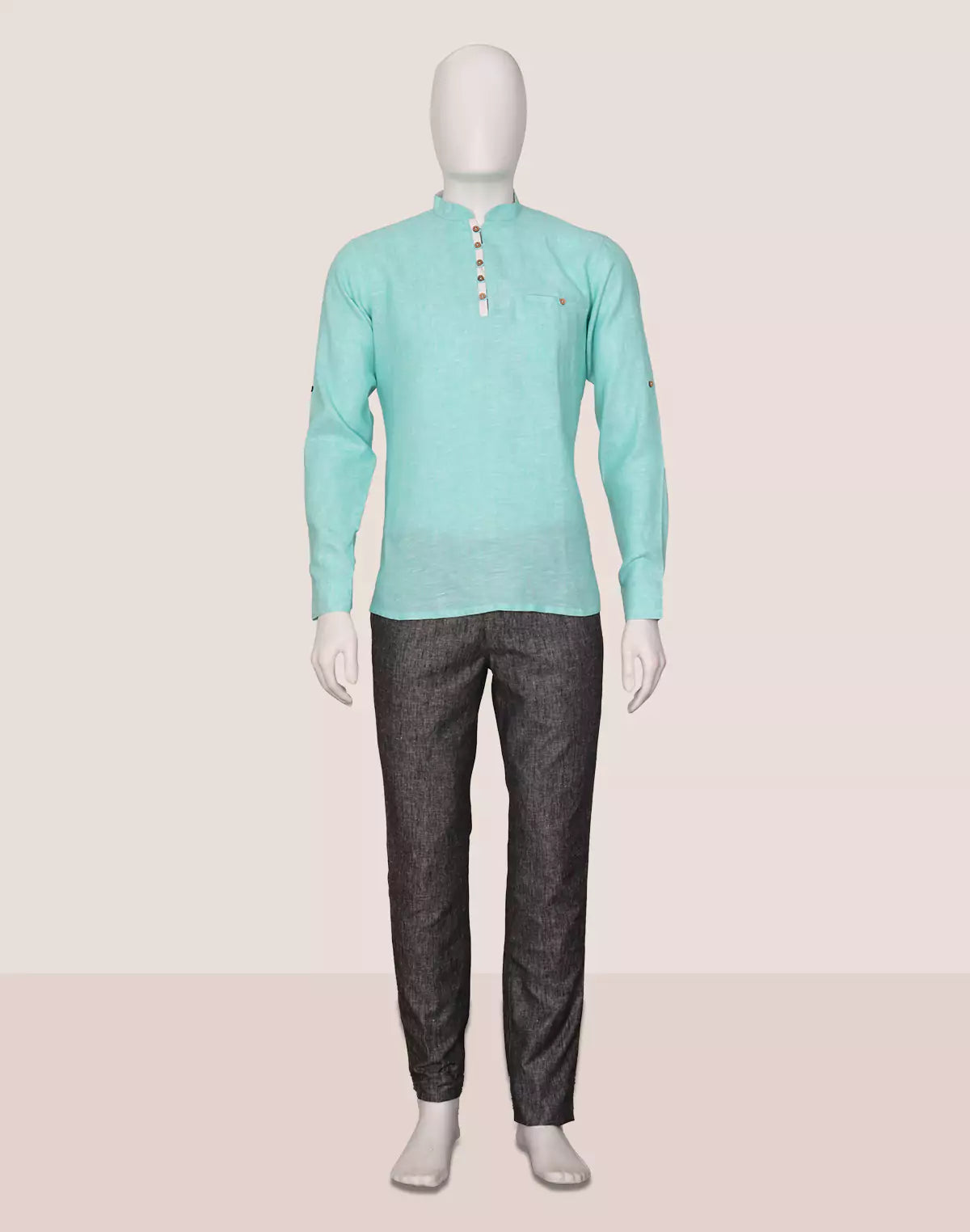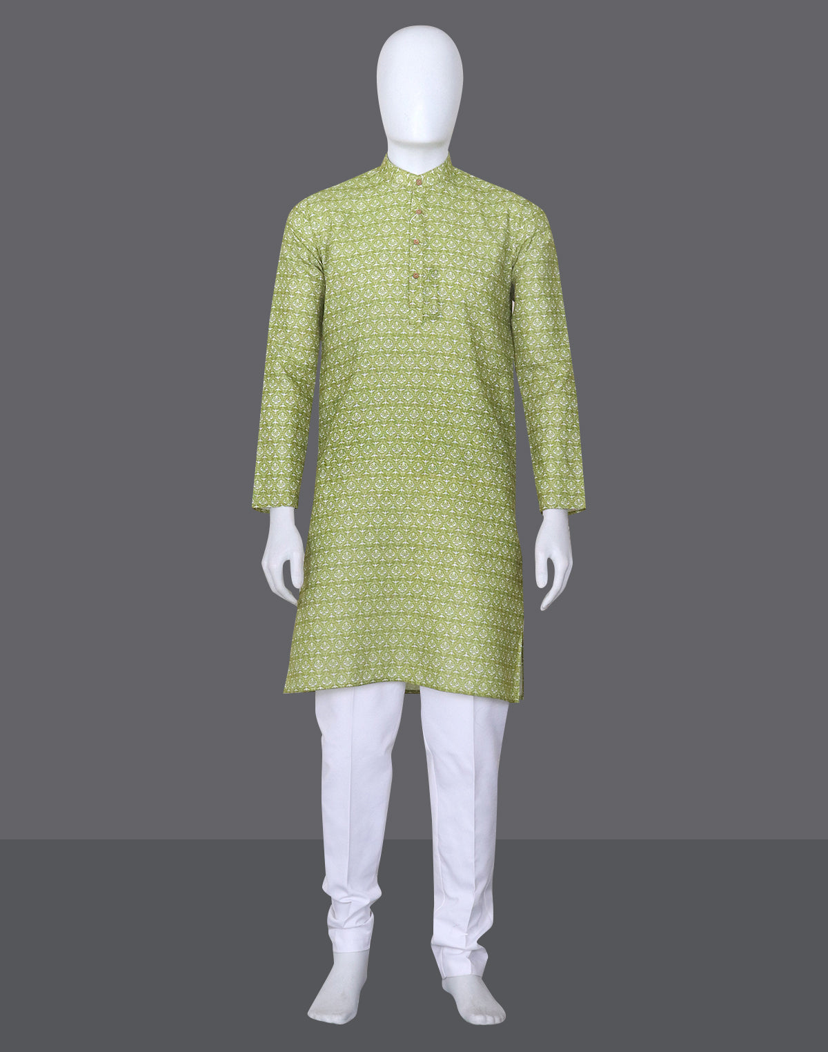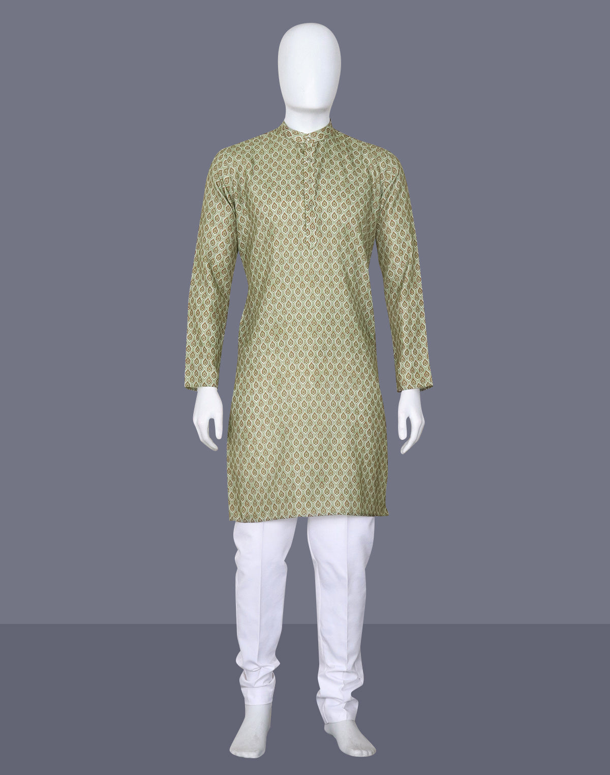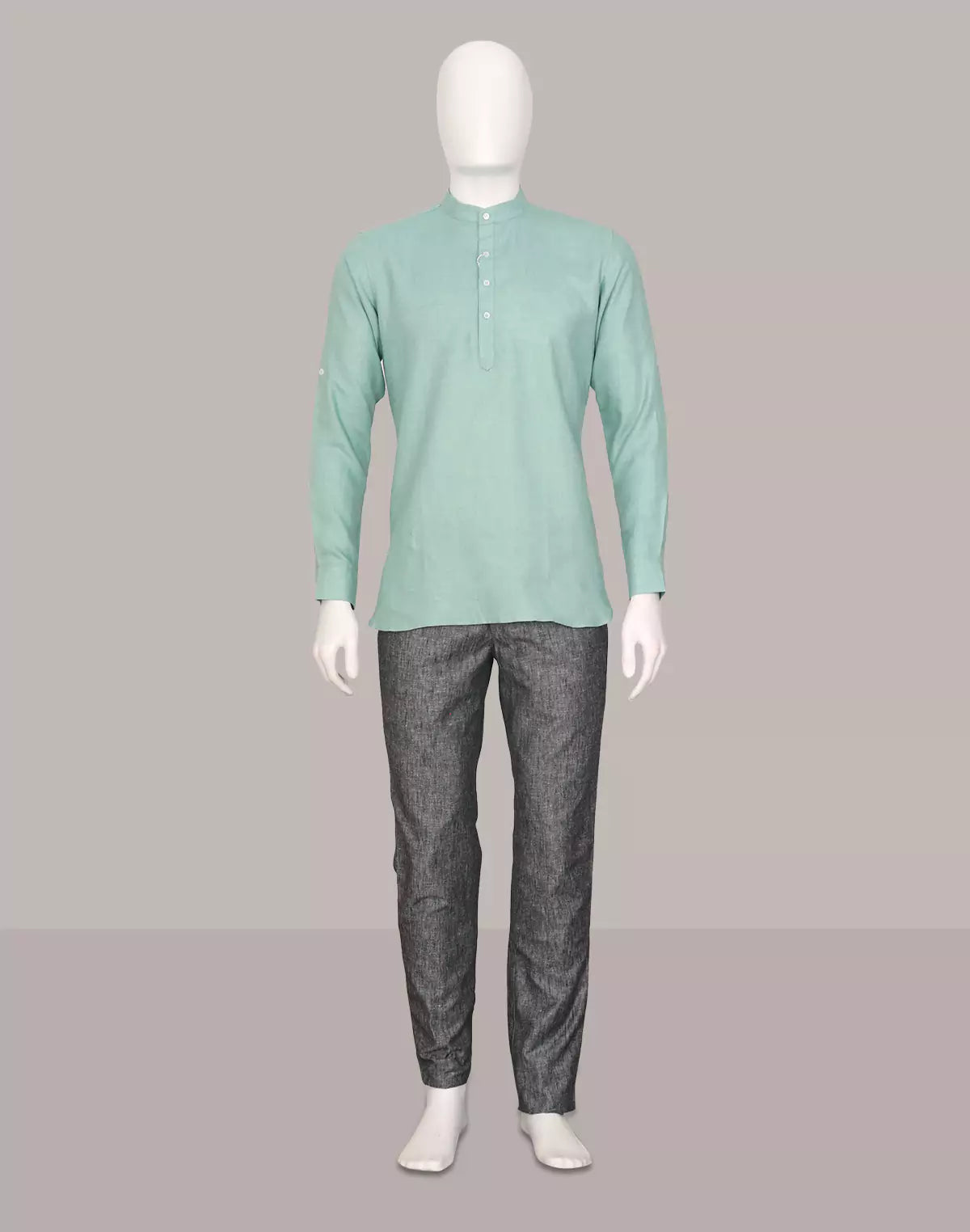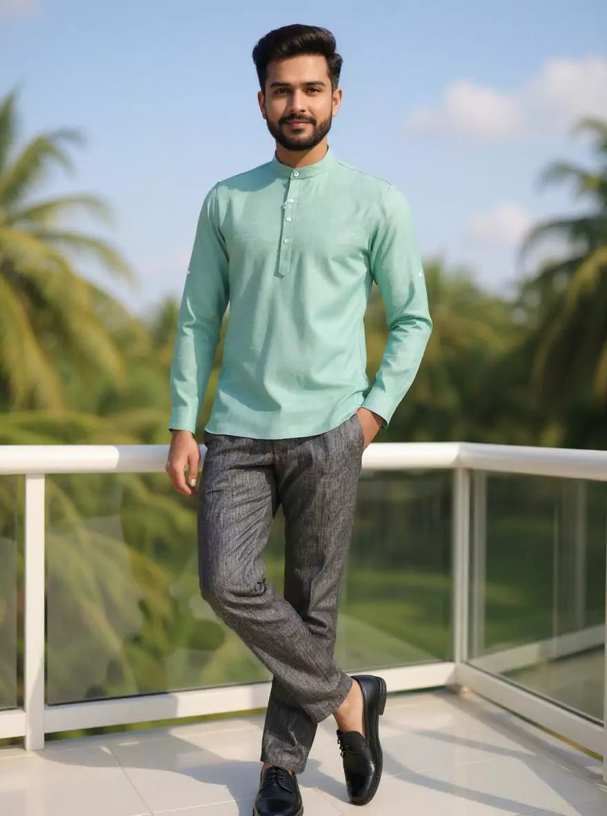 Pista Trellis Patterned Glaxo Cotton Short Kurta for Men