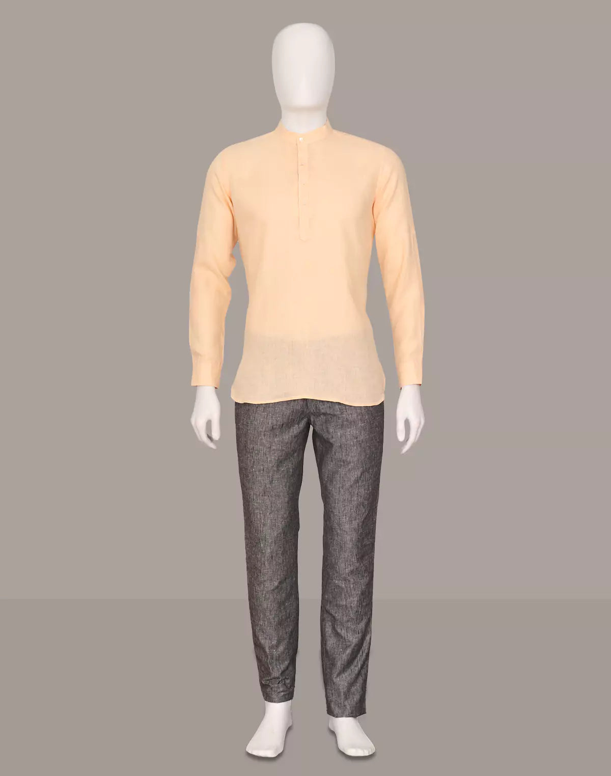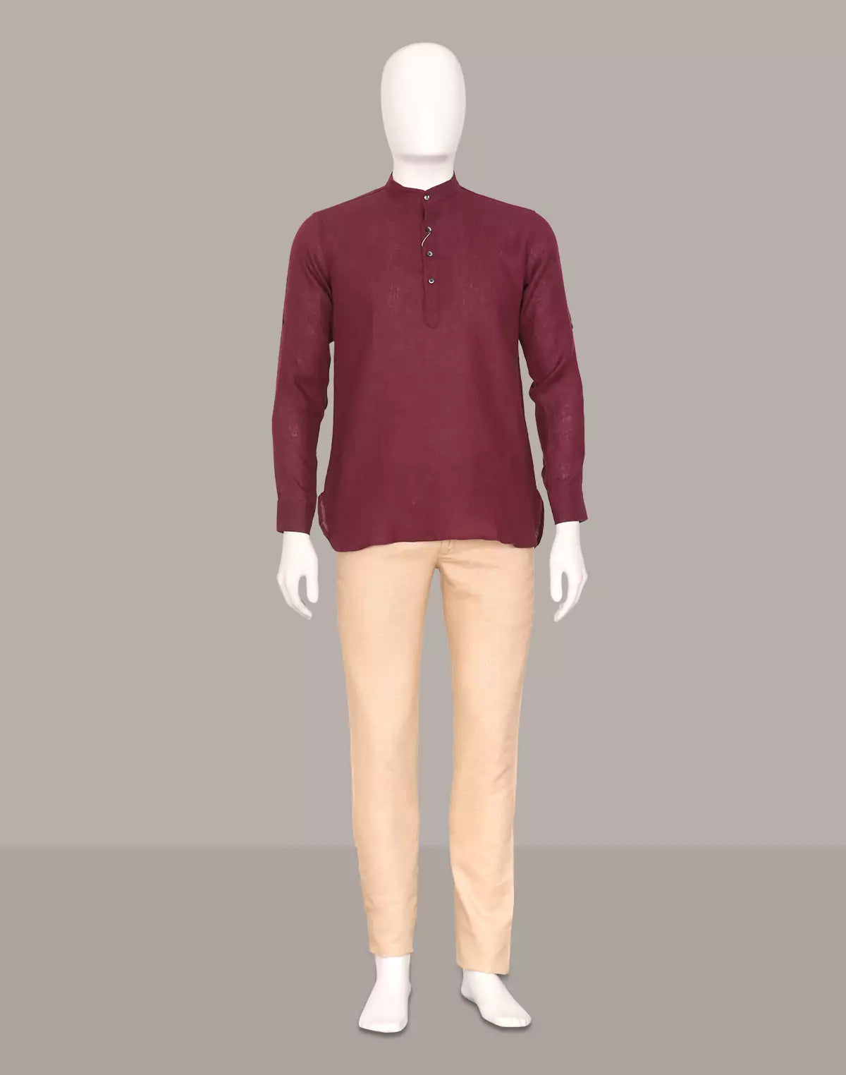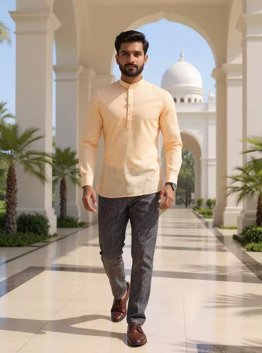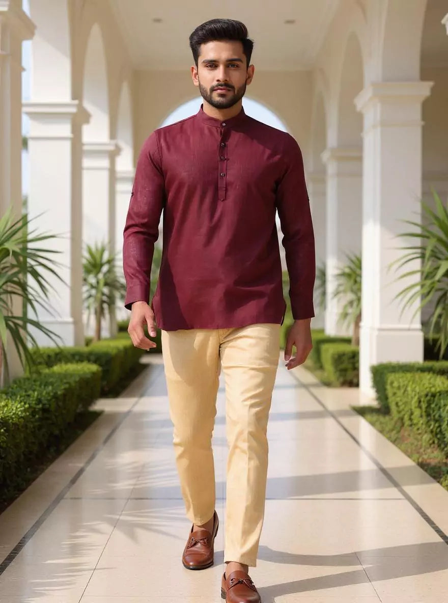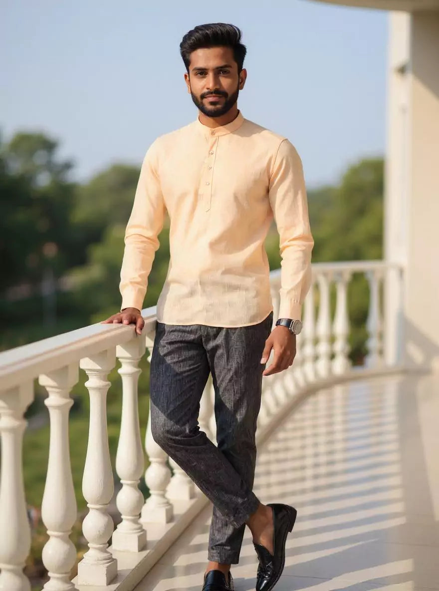 Pista Trellis Patterned Glaxo Cotton Short Kurta for Men