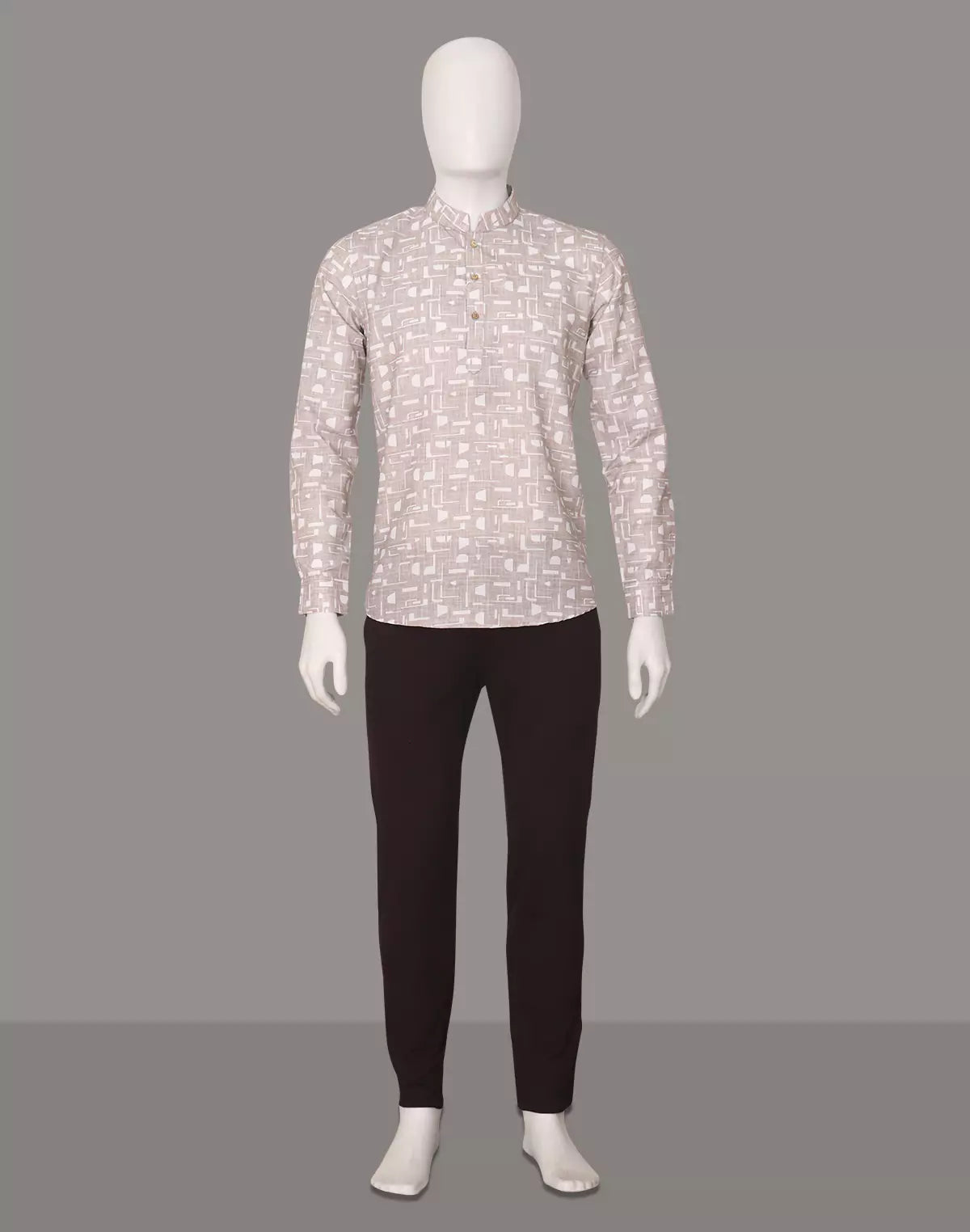 Dust Coloured Glaxo Cotton Geometric Printed Short Kurta