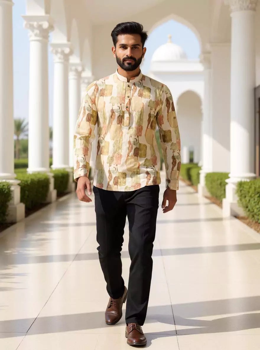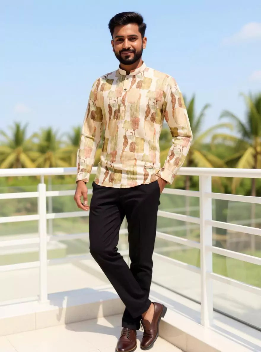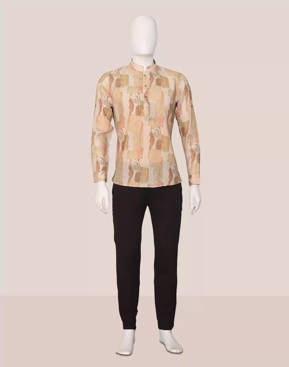 Natural Colour Ikat Printed Giza Cotton Short Kurta