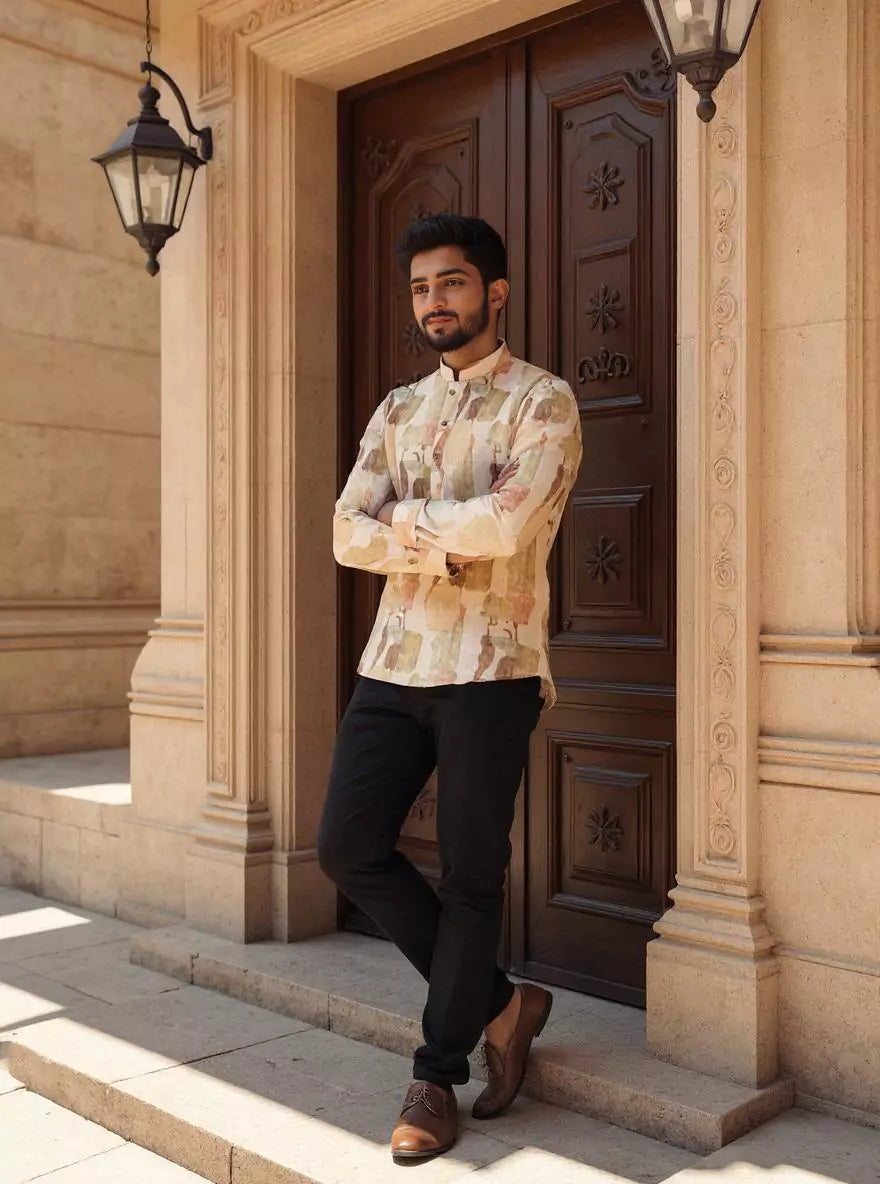 Fawn Ikat Print Regular Fit Giza Cotton Kurta