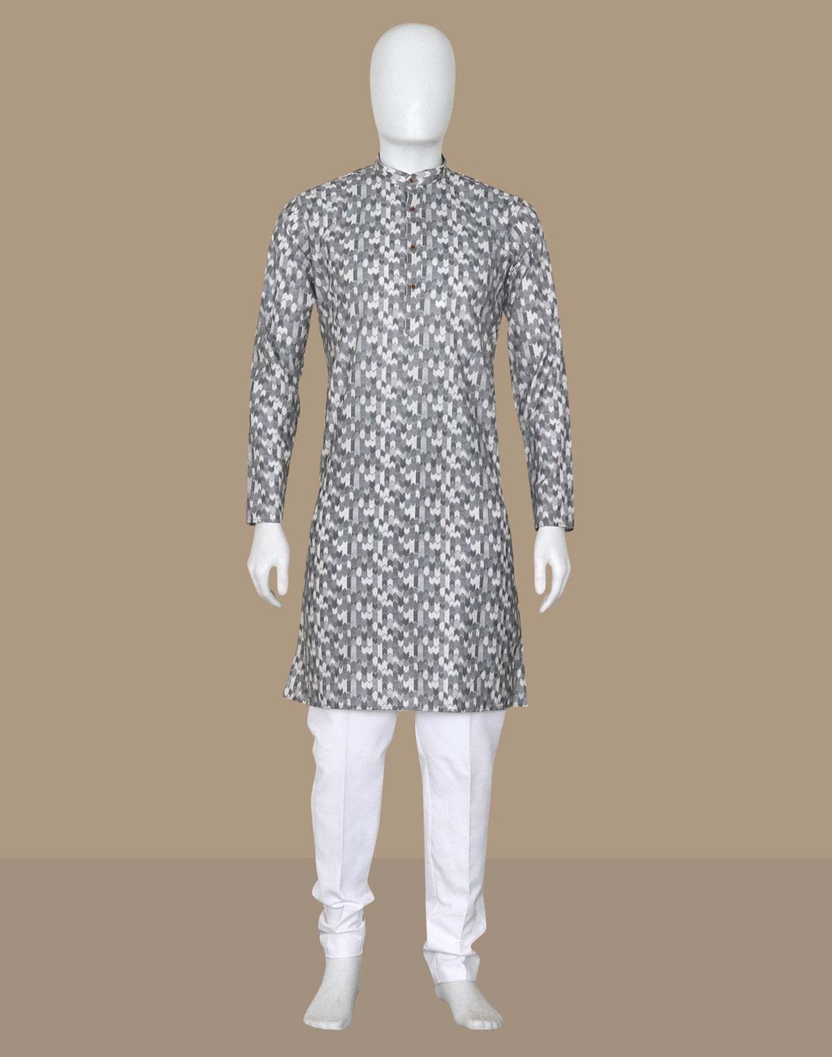 Grey Zig Zag Patterned Cotton Silk Kurta