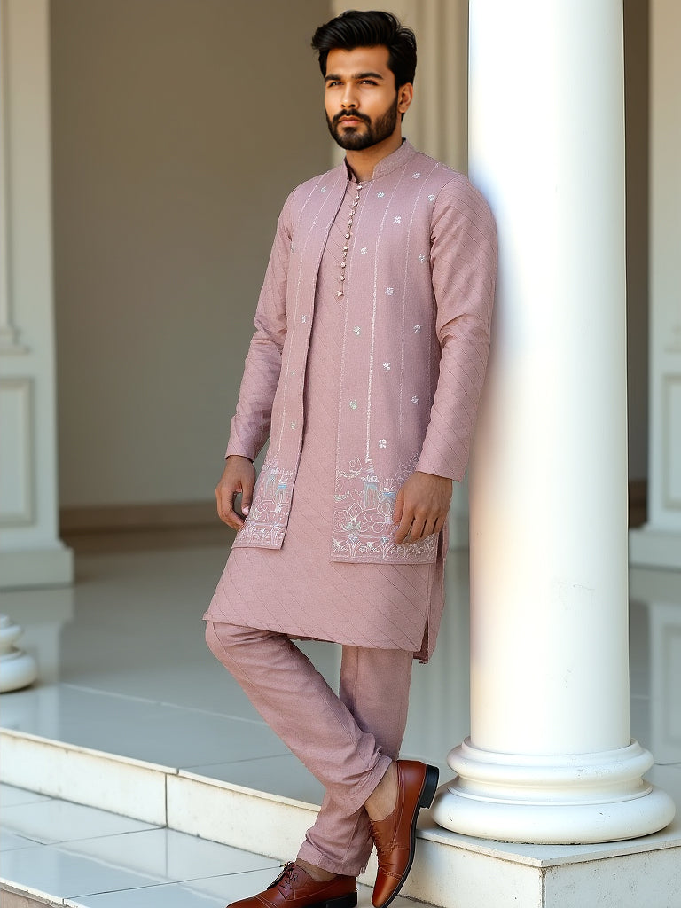 | FABRIC: Jacket-Raw Silk, Kurta-Raw Silk, Bottom-Raw Silk | |