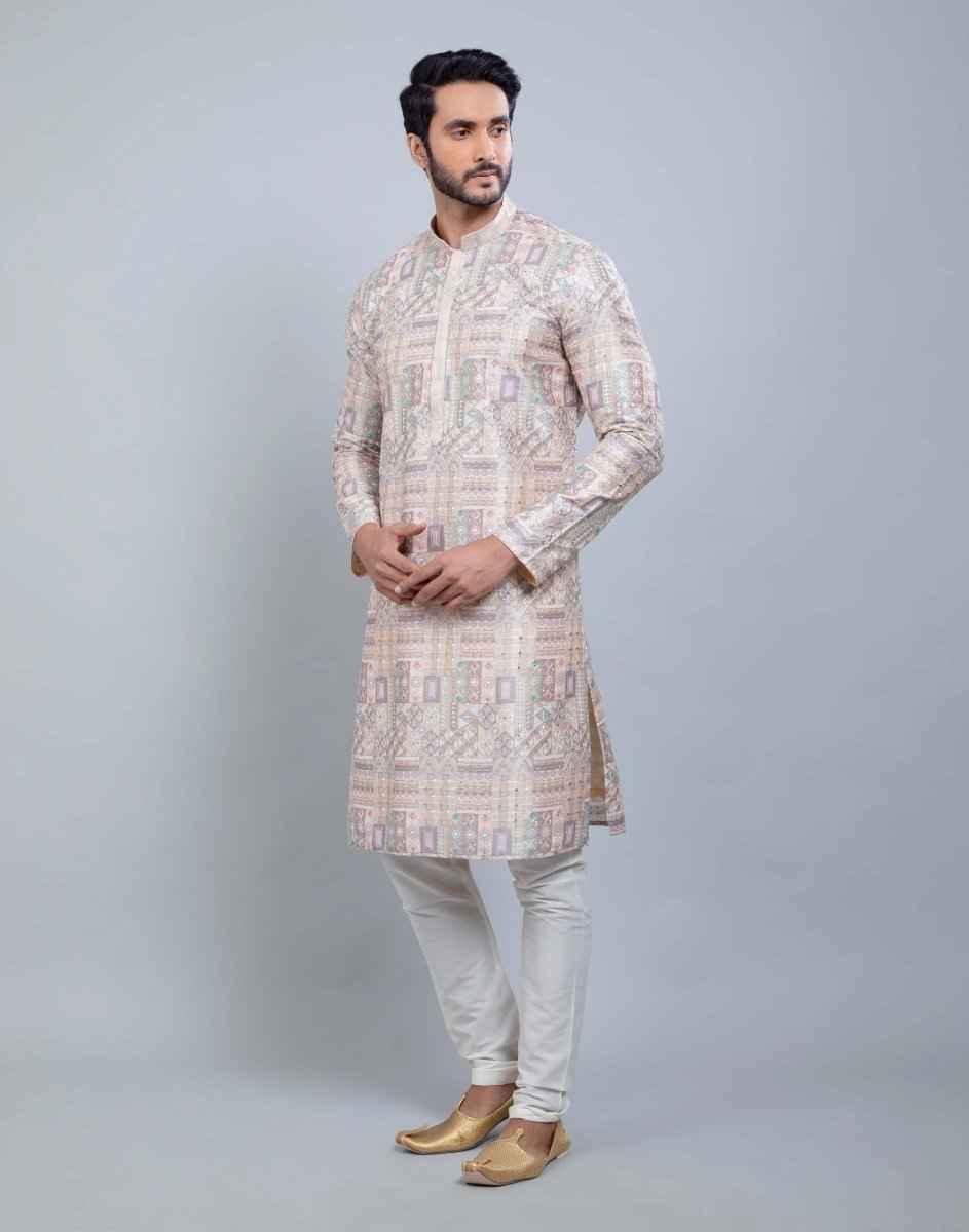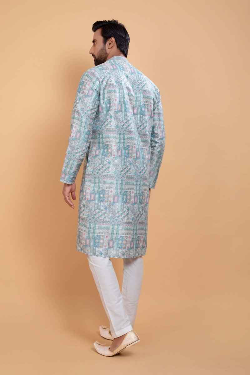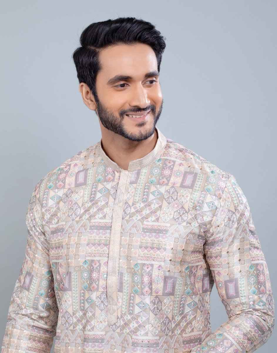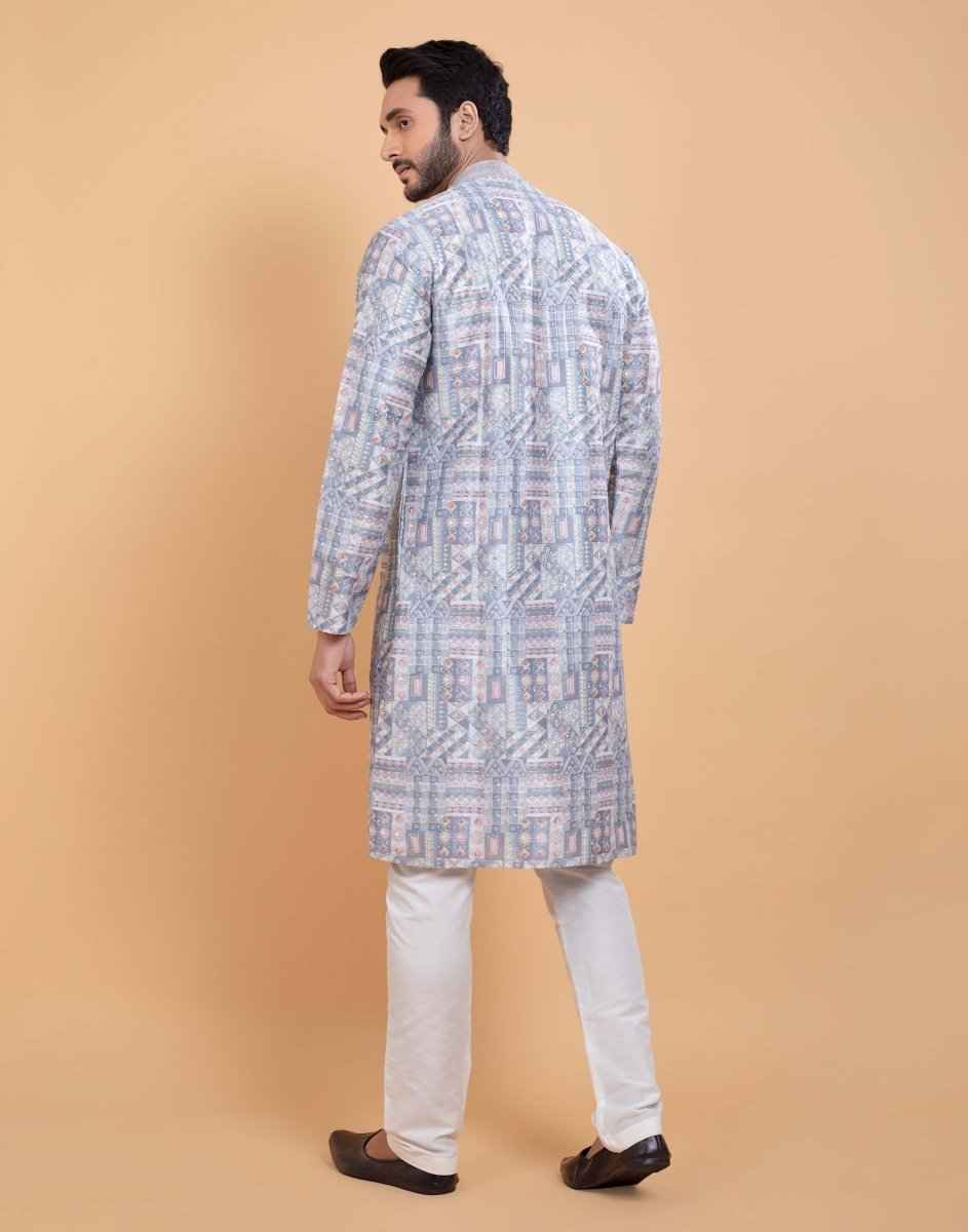 The Printed Kurta is a statement piece that screams luxury and sophistication. The all-over print, combined with intricate zari work creates an aura of elegance that is perfect for formal occasions like weddings. It's not only the design but also the comfortability factor which will make you fall in love with it instantaneously!