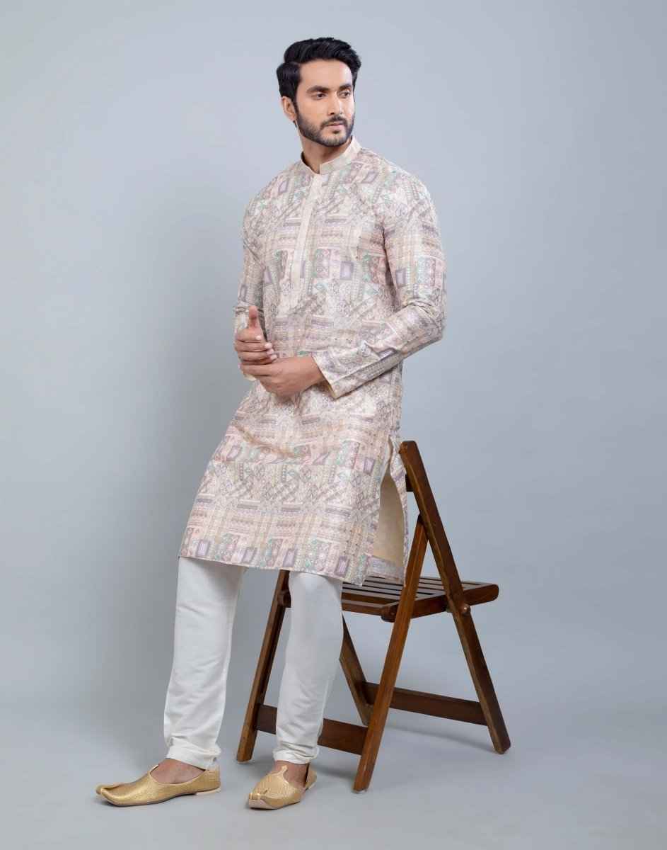 | WORK: Printed And Zari Work | GARMENT TYPE: Kurta Pyjama |