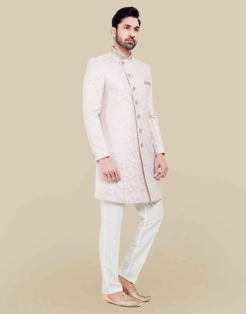 The color lavender is often associated with luxury and sophistication, making it the perfect choice for a sherwani. The sherwani can be plain or adorned with intricate embroidery. Whether you're attending a wedding or another formal event, this sherwani and pant set will make you look and feel your best.