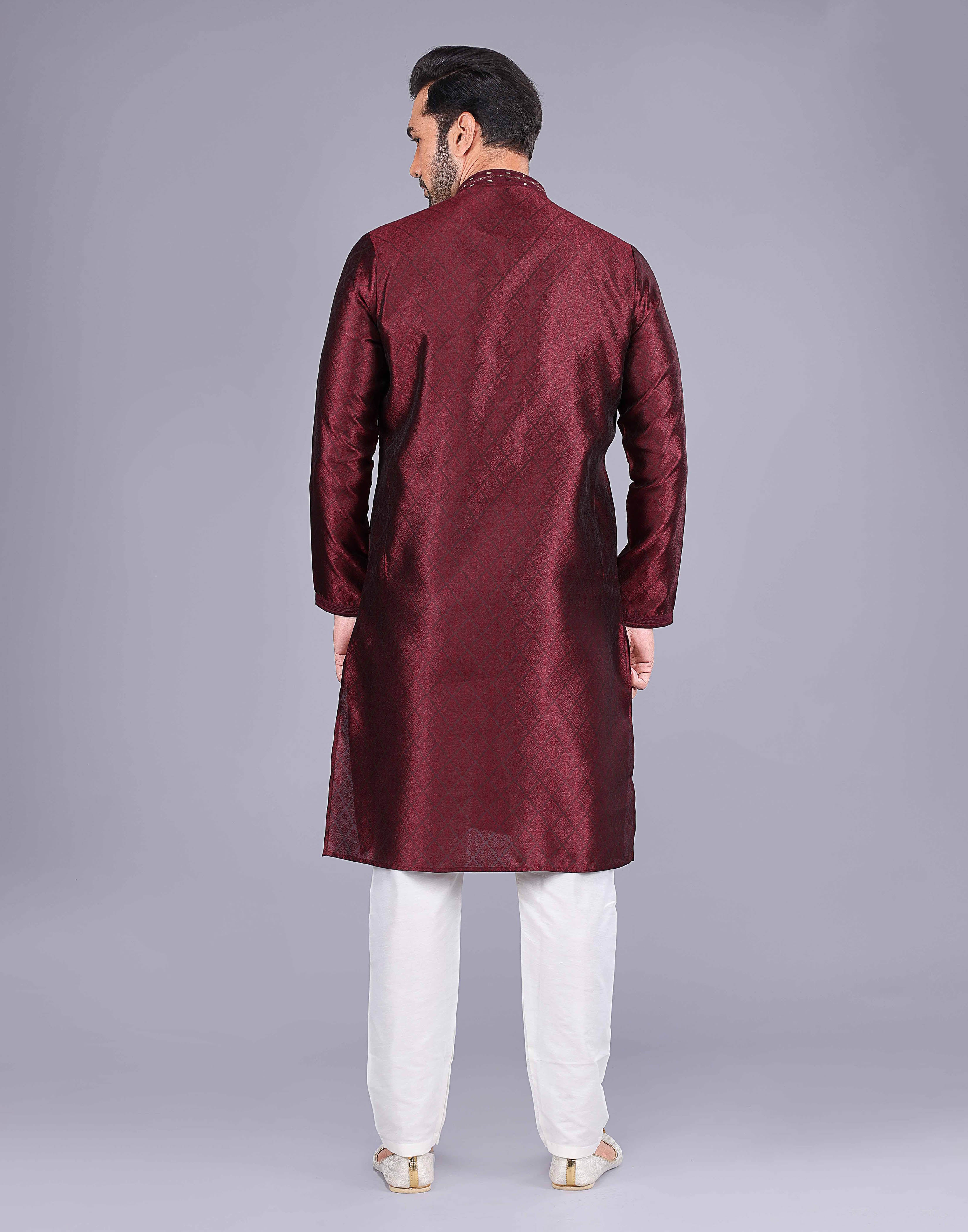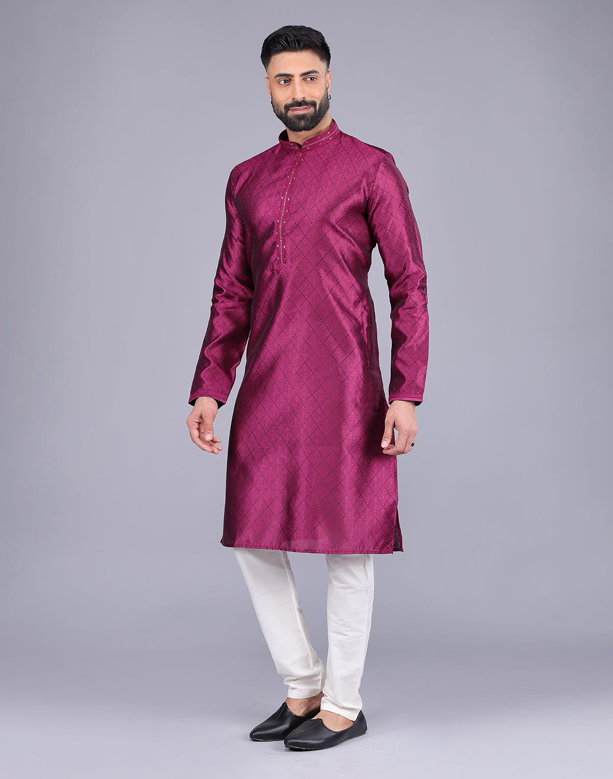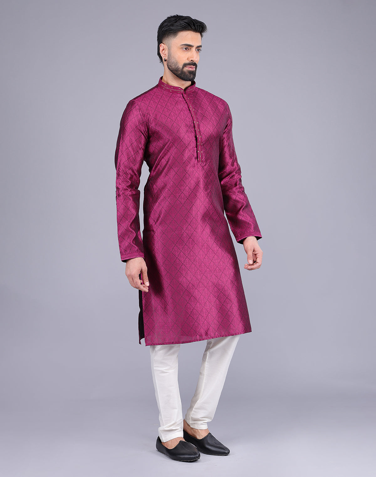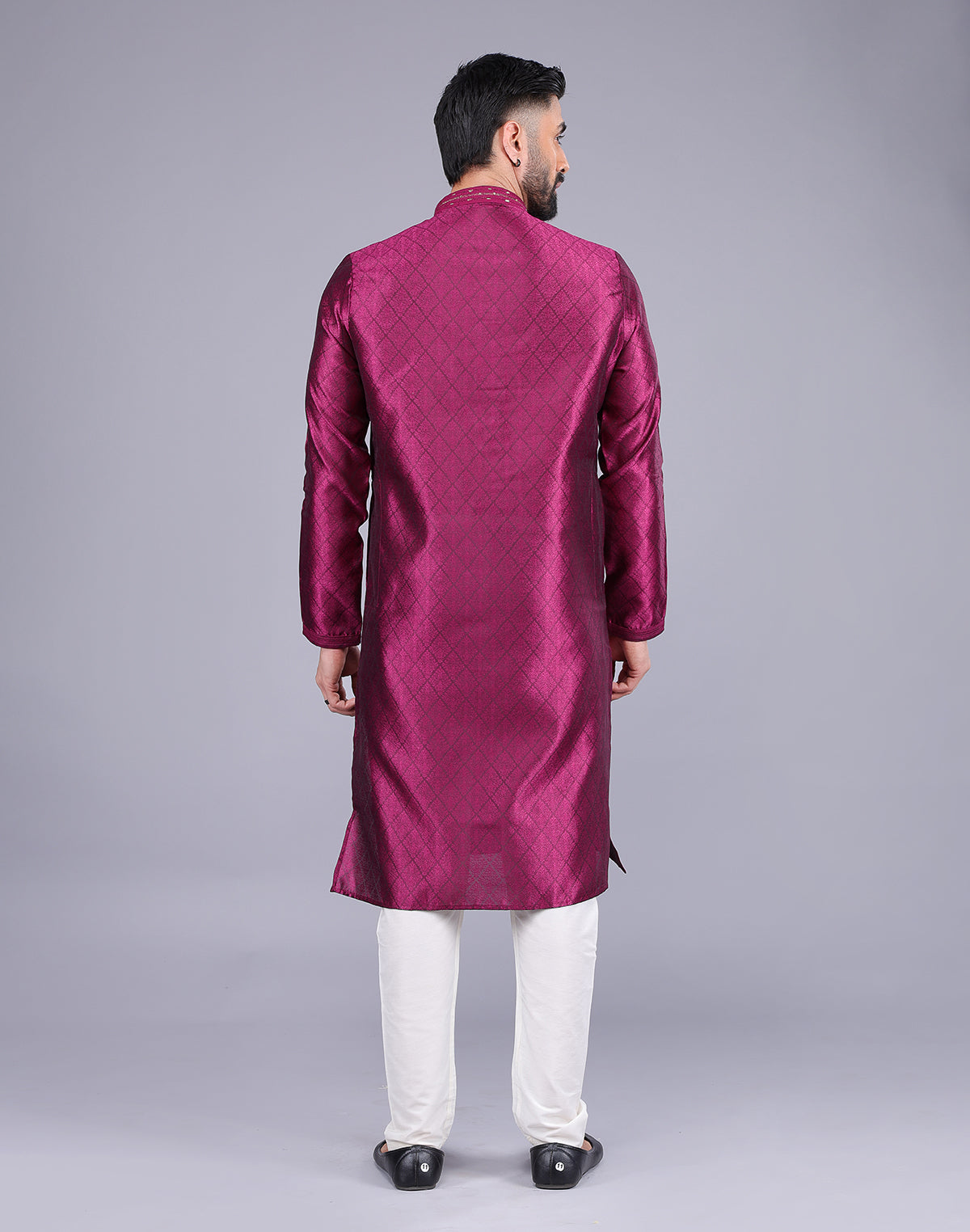 All Over Self Floral Design Soft Silk Kurta Pajama