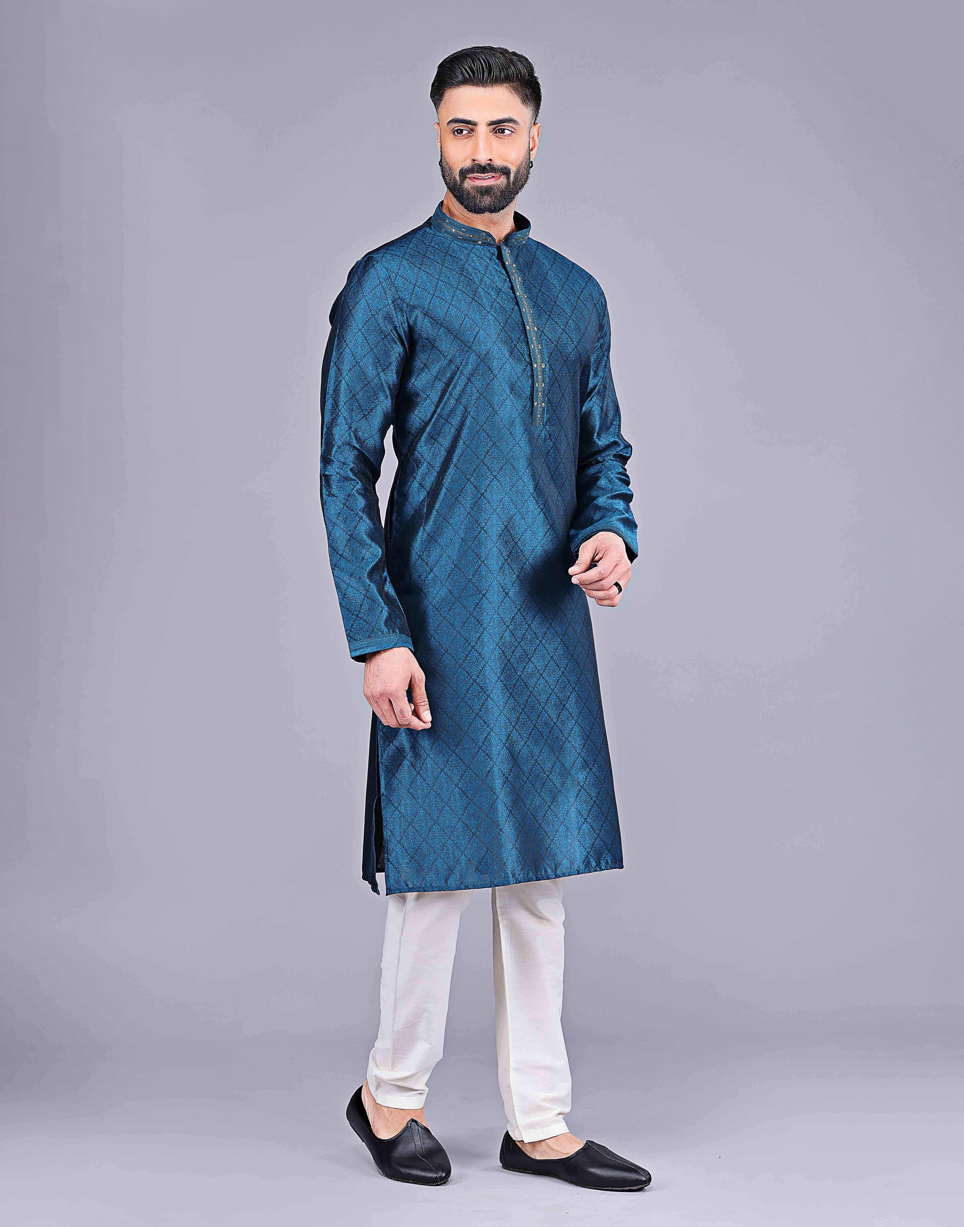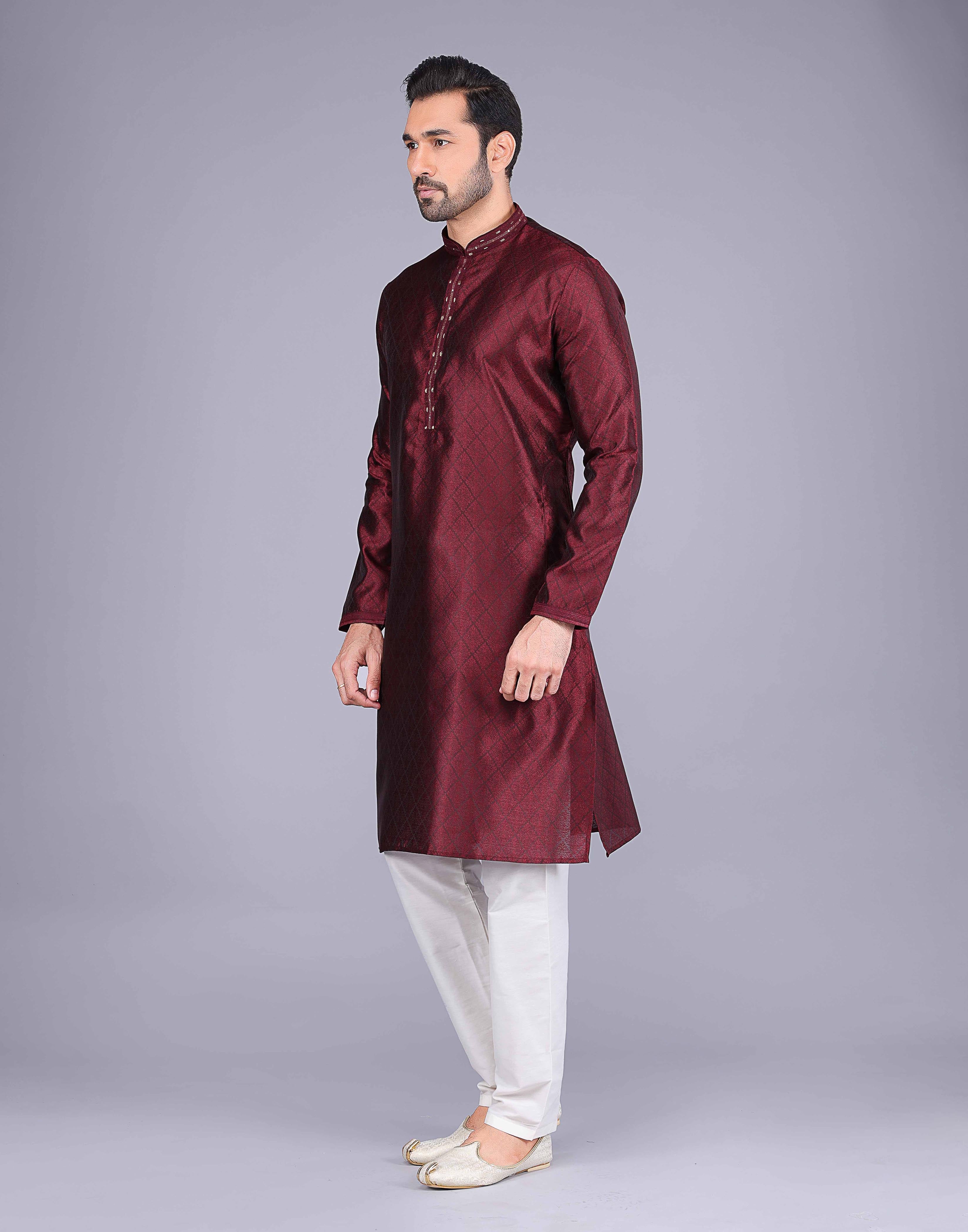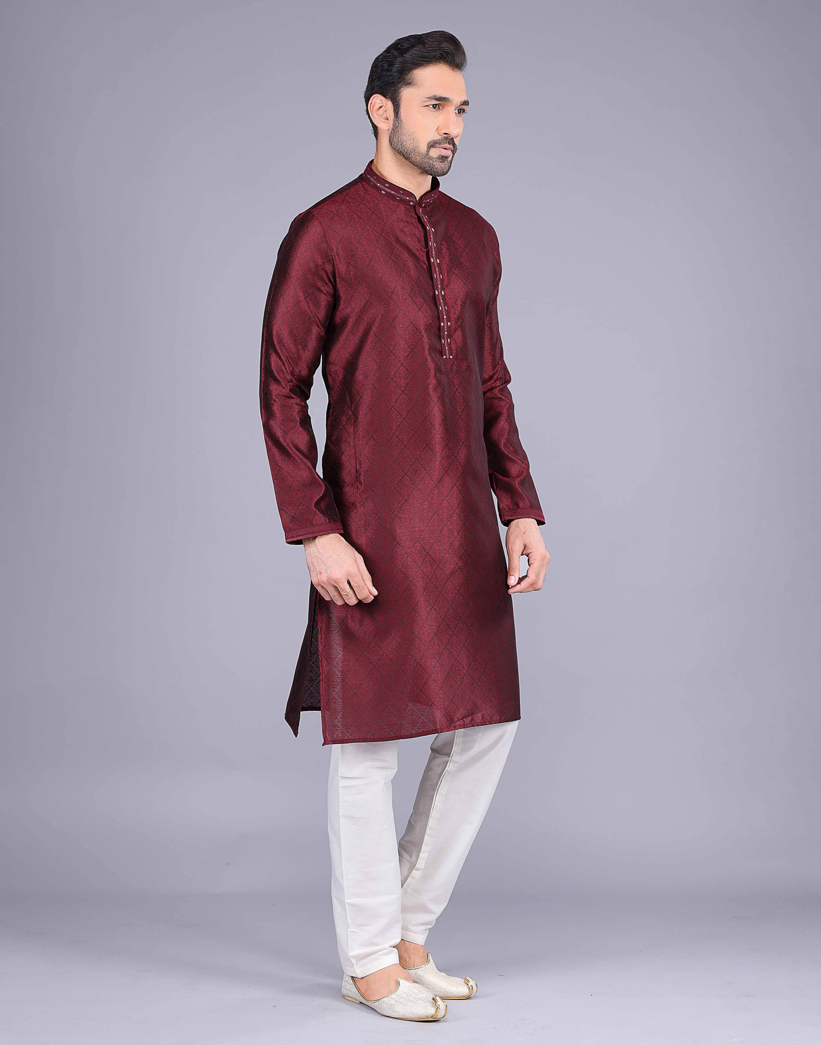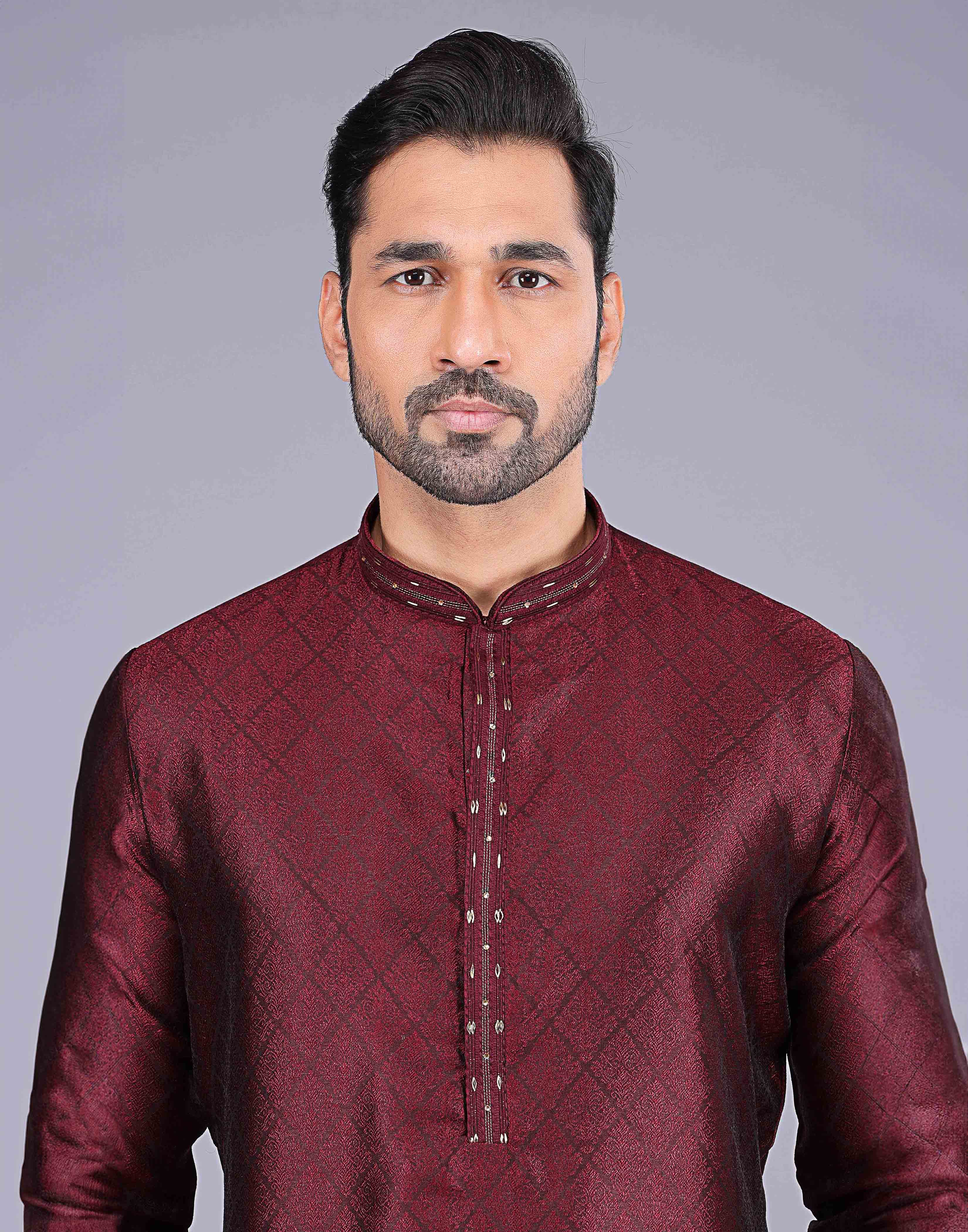 All Over Self Floral Design Soft Silk Kurta Pajama