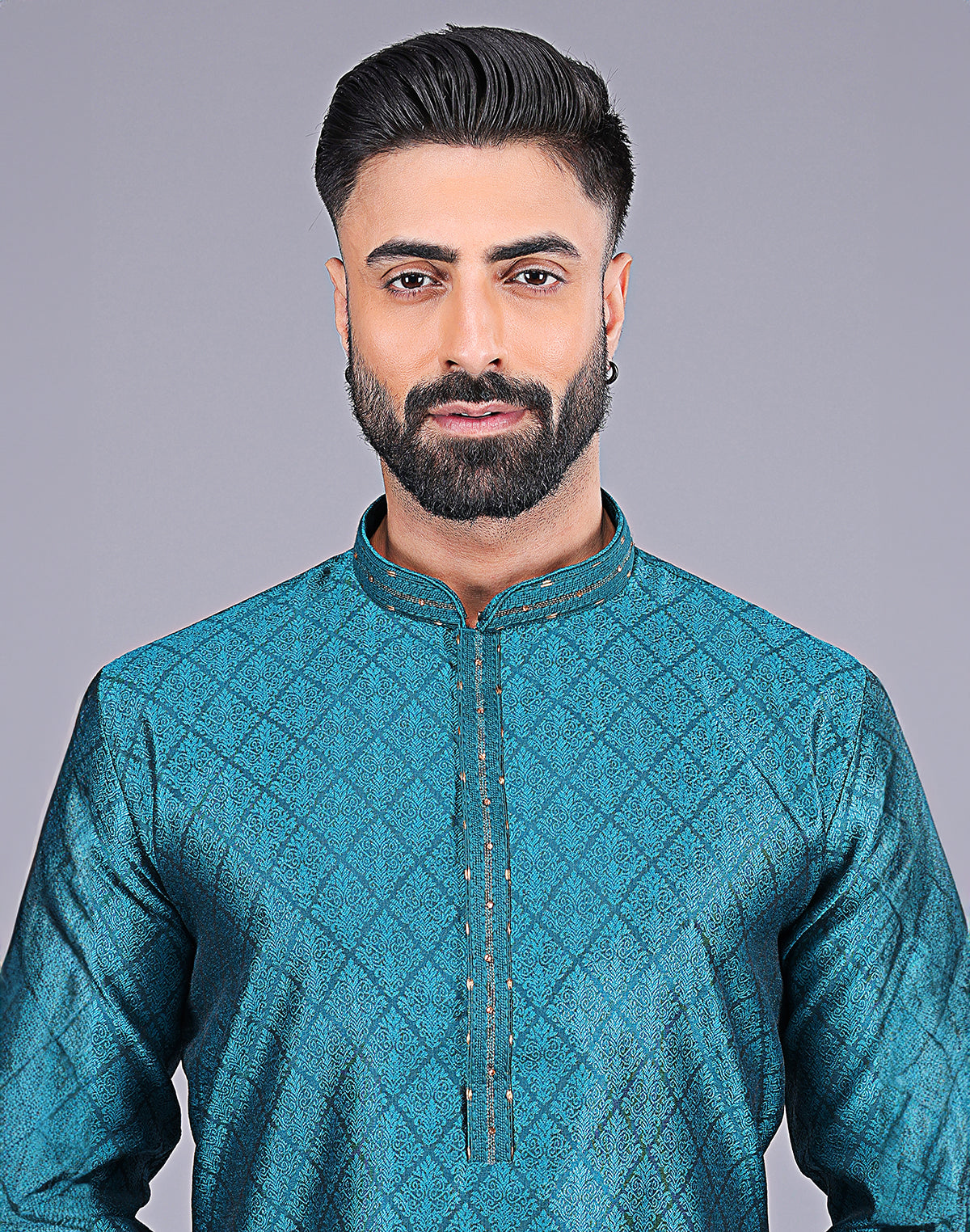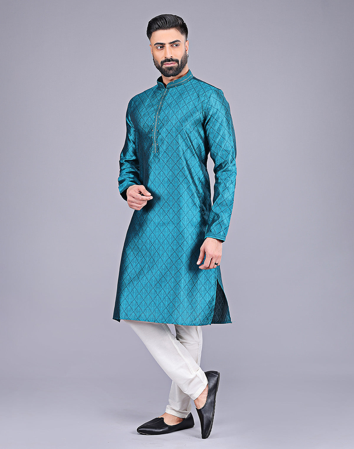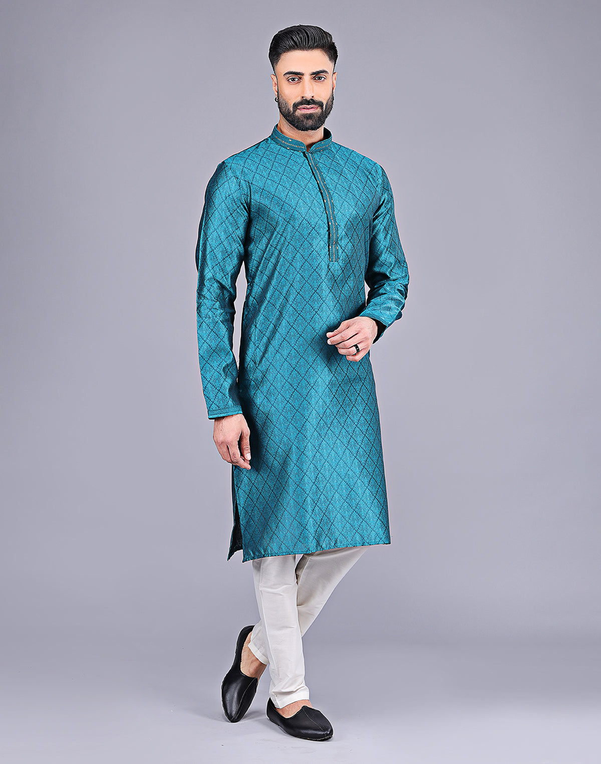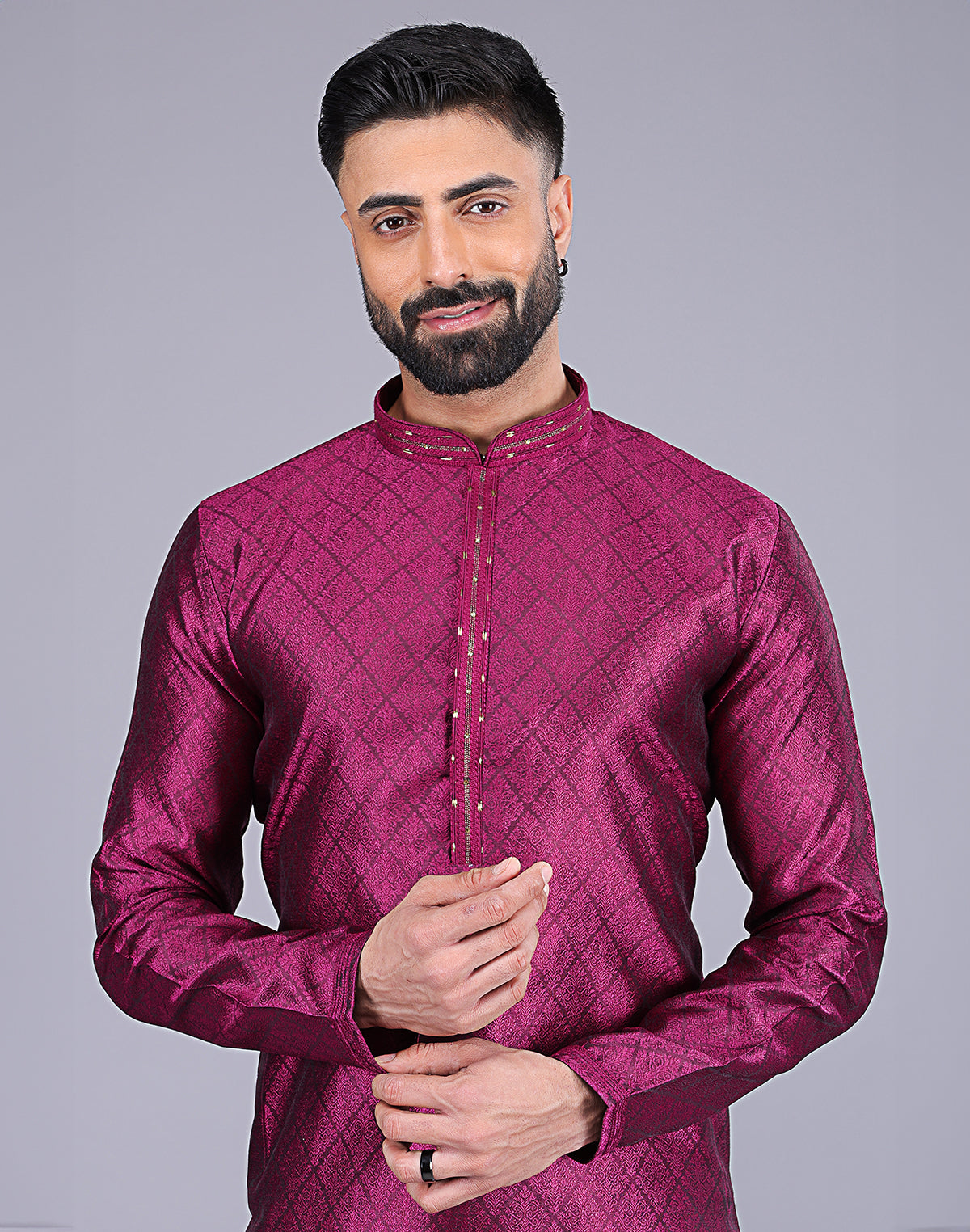 All Over Self Floral Design Soft Silk Kurta Pajama