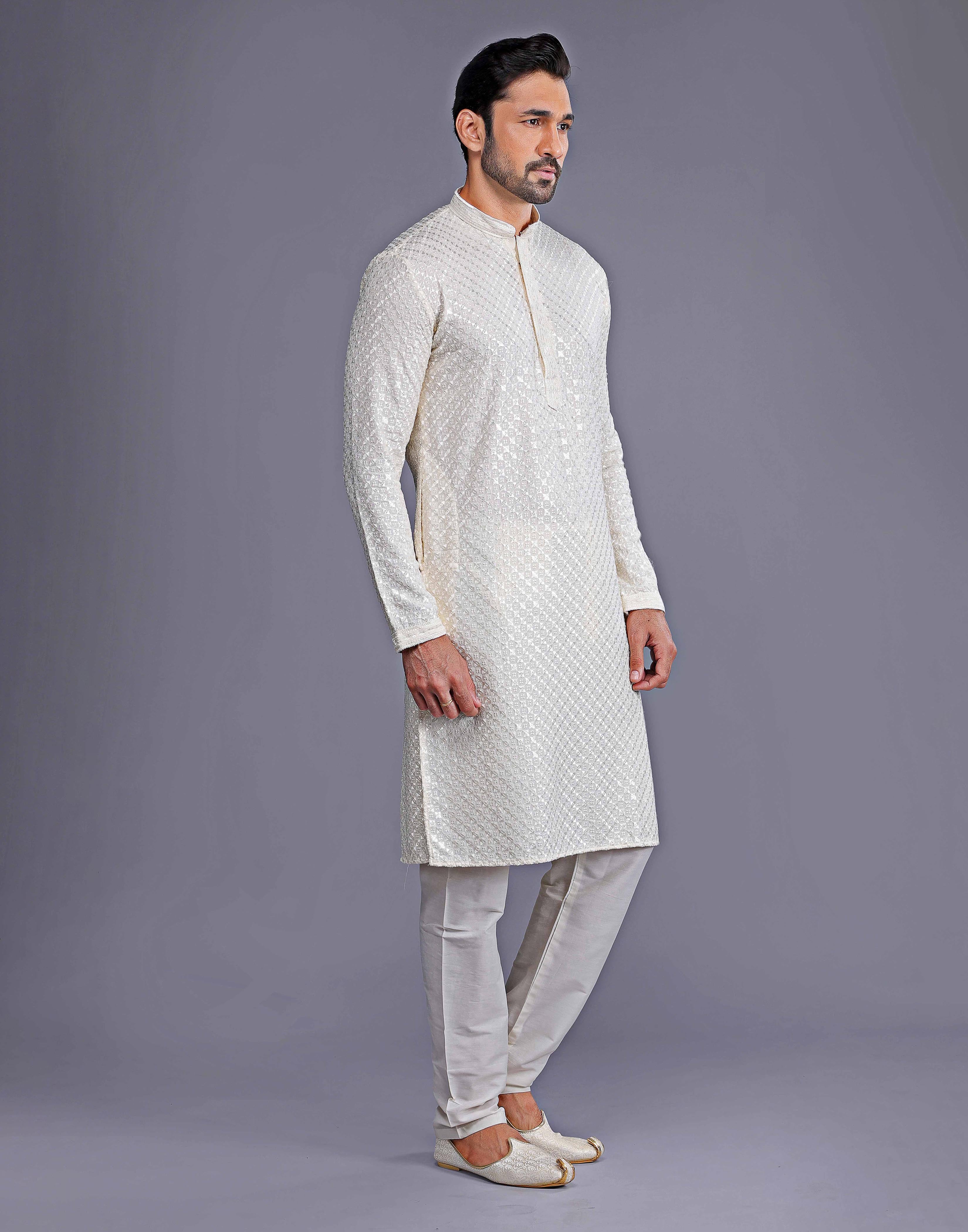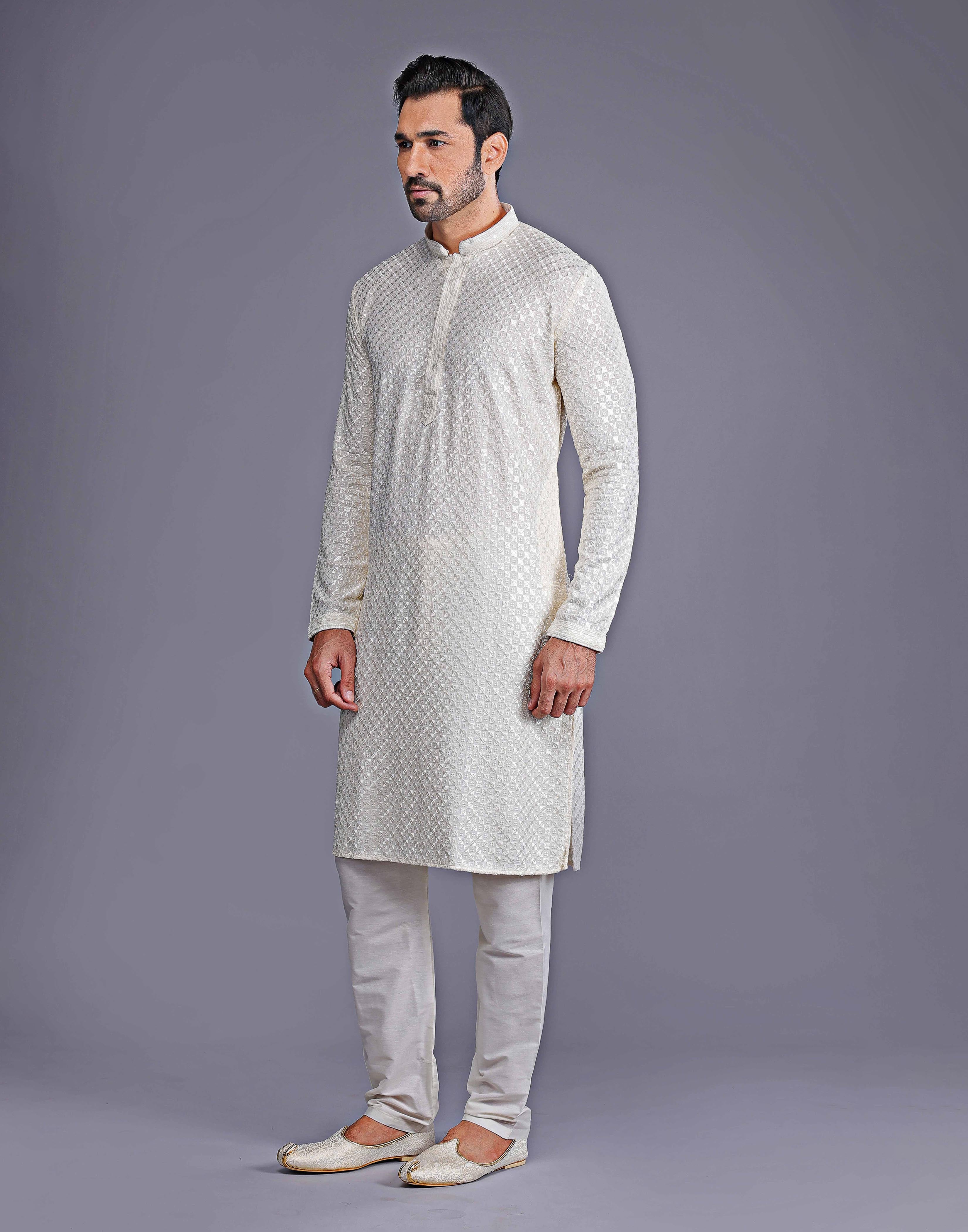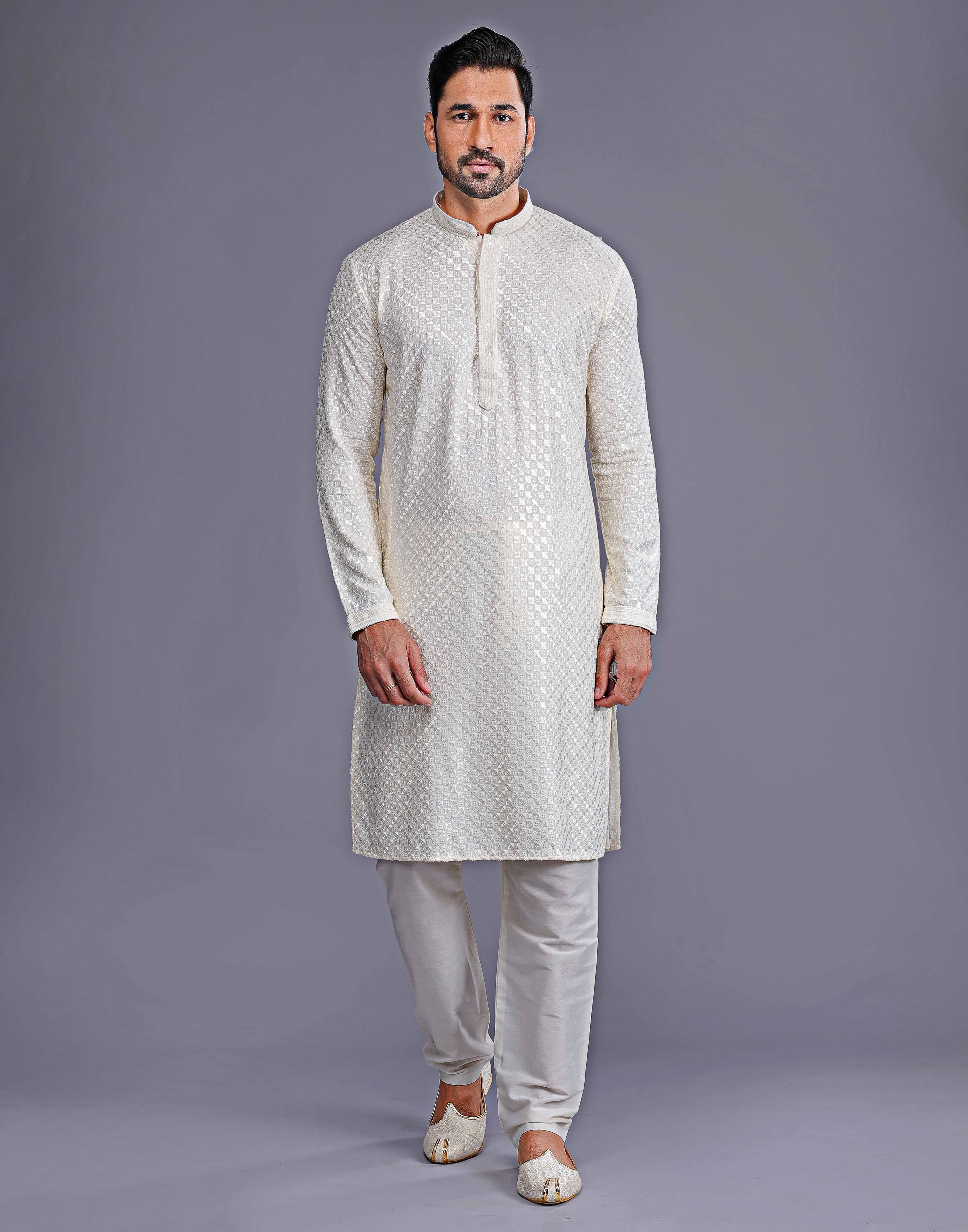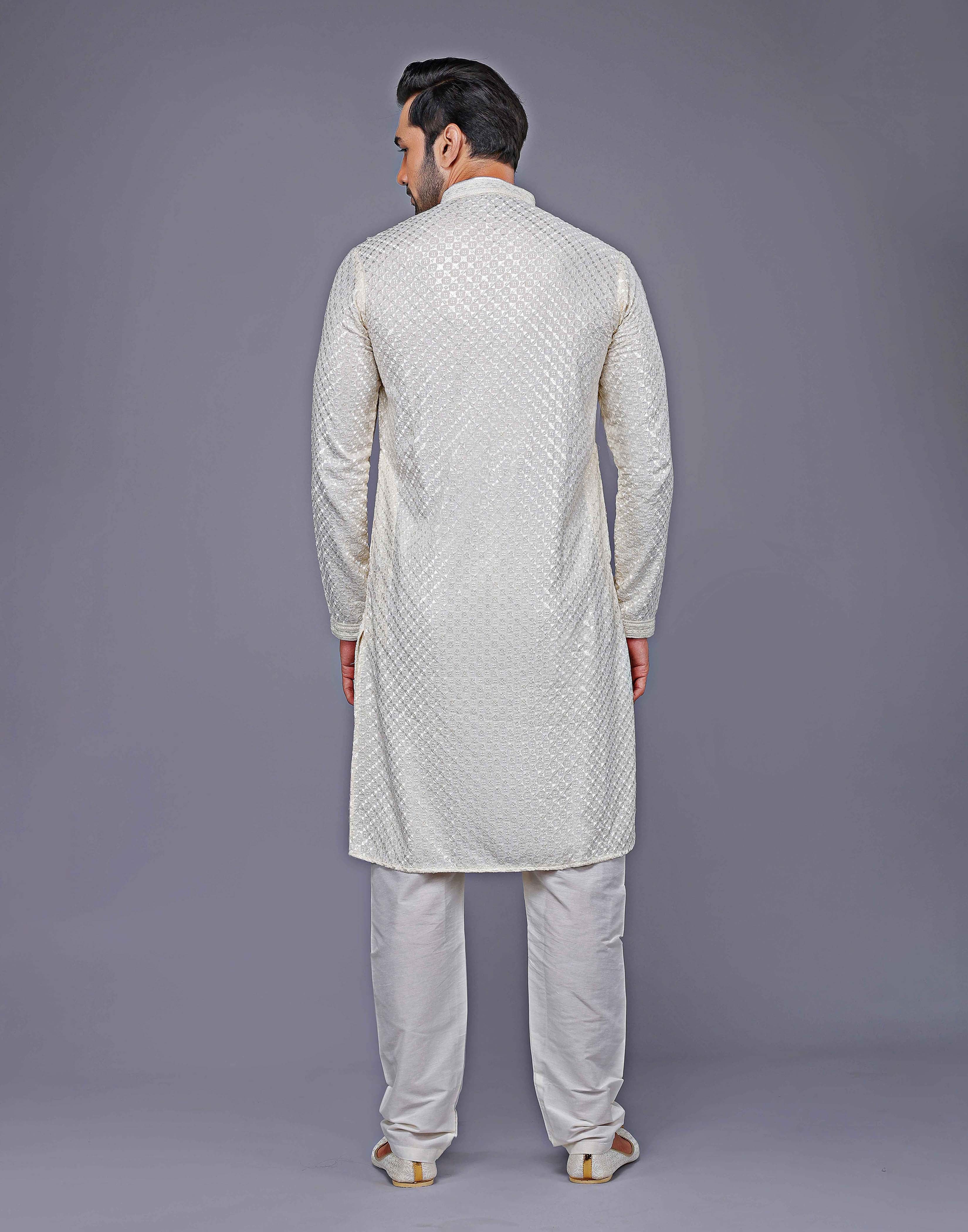 Looking for something special to wear to your next event? Why not try a dot printed kurta with texture? This luxurious style features a kurta made of Georgette fabric with intricate collar work. The bottom is a cotton thread and embroidered in a beautiful design. You'll love the way you look and feel in this one-of-a-kind outfit!
