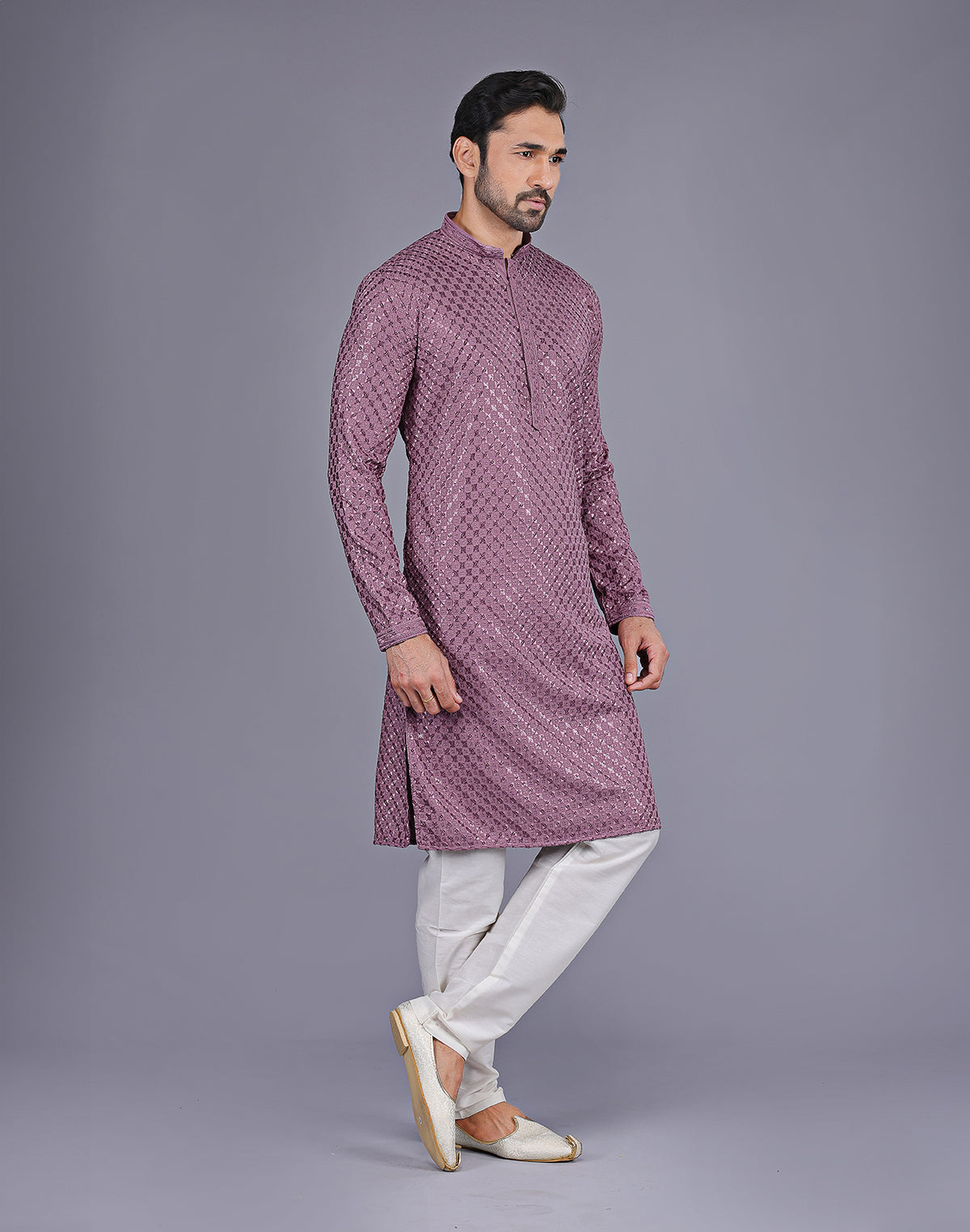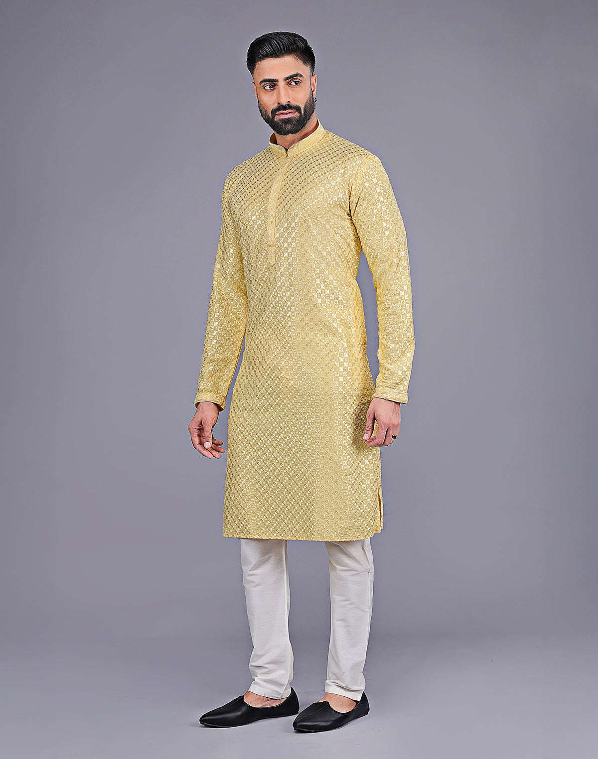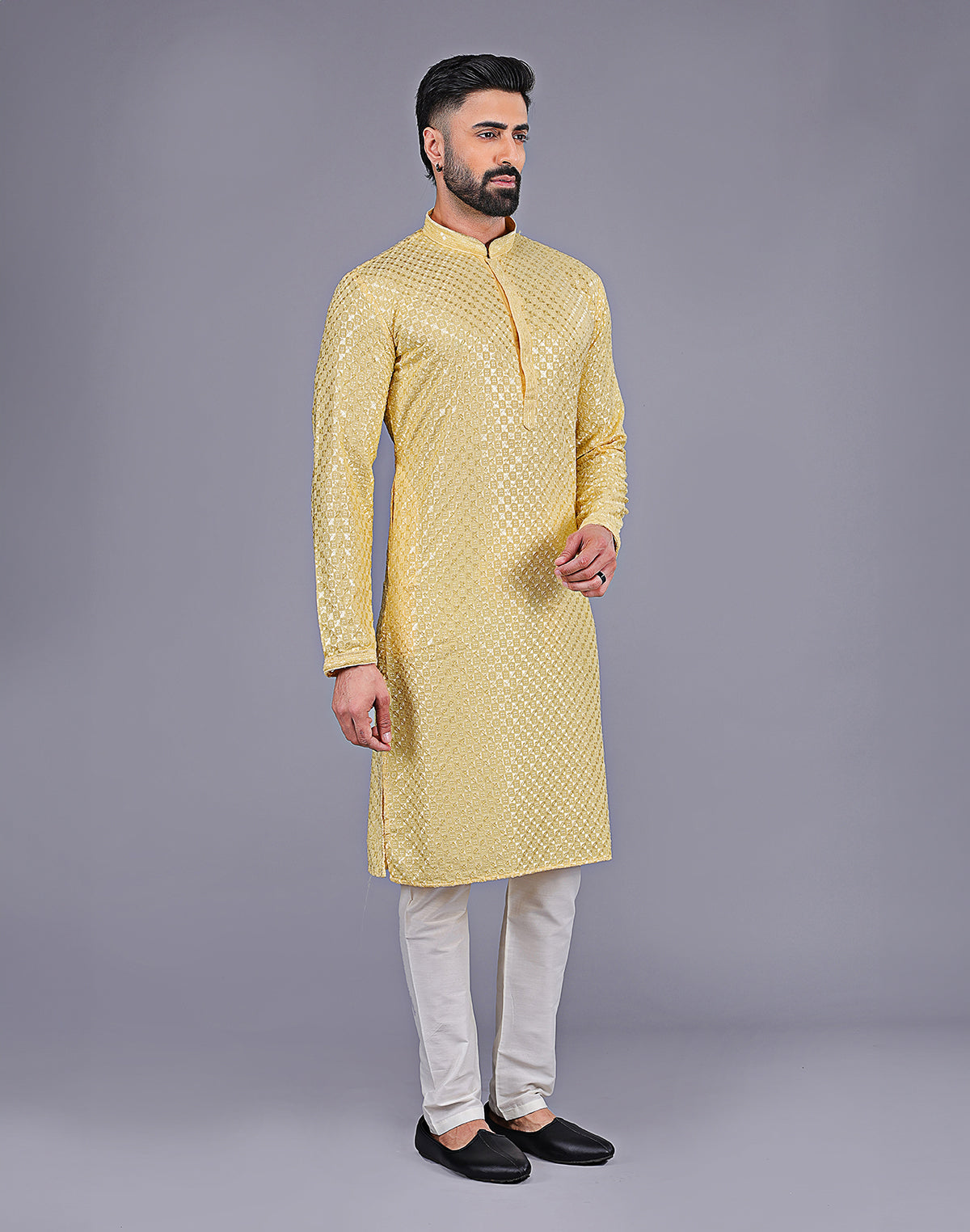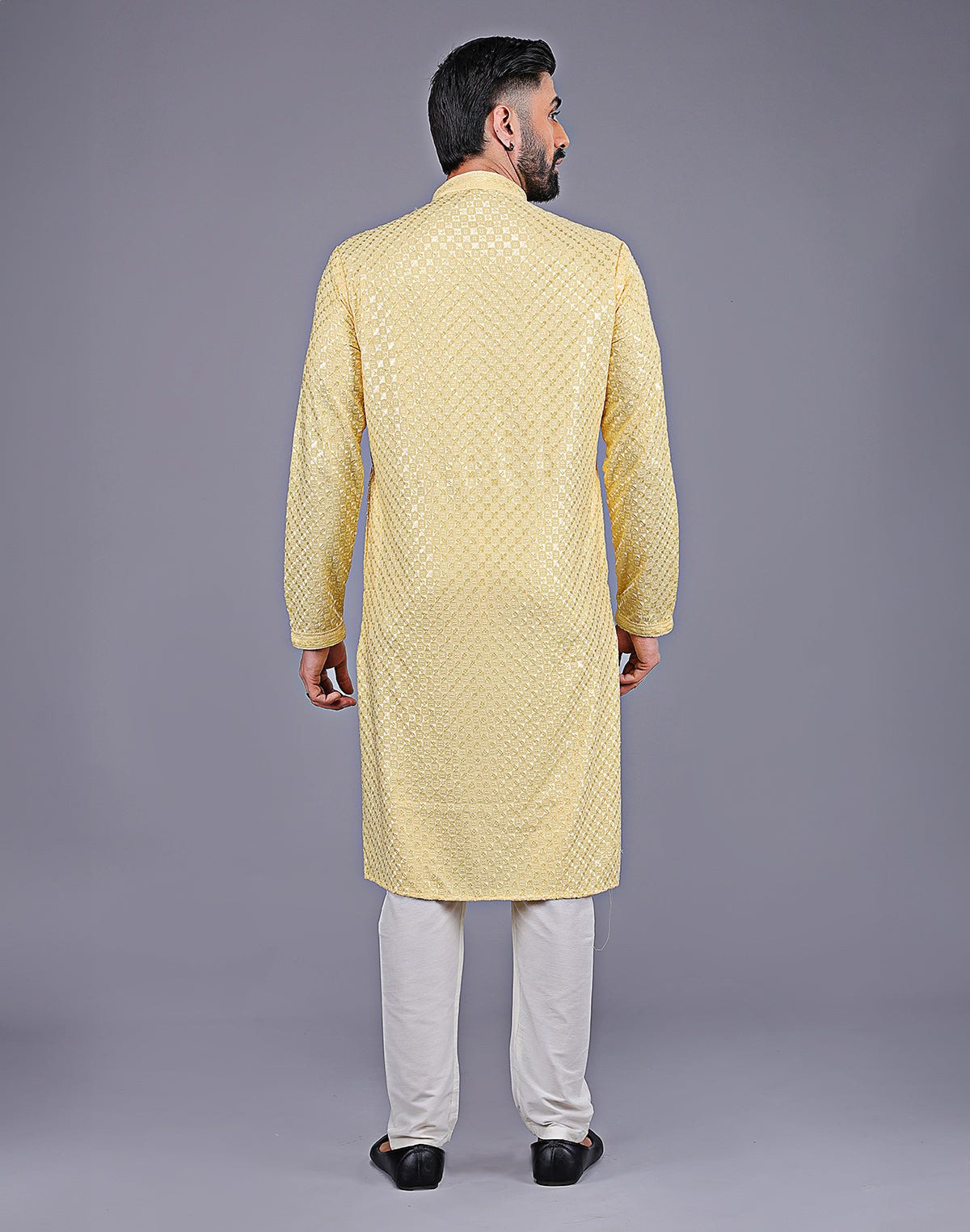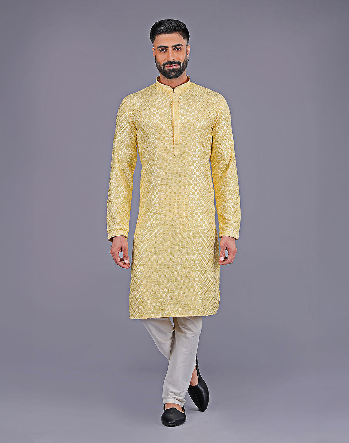 Looking for something special to wear to your next event? Why not try a dot printed kurta with texture? This luxurious style features a kurta made of Georgette fabric with intricate collar work. The bottom is a cotton thread and embroidered in a beautiful design. You'll love the way you look and feel in this one-of-a-kind outfit!