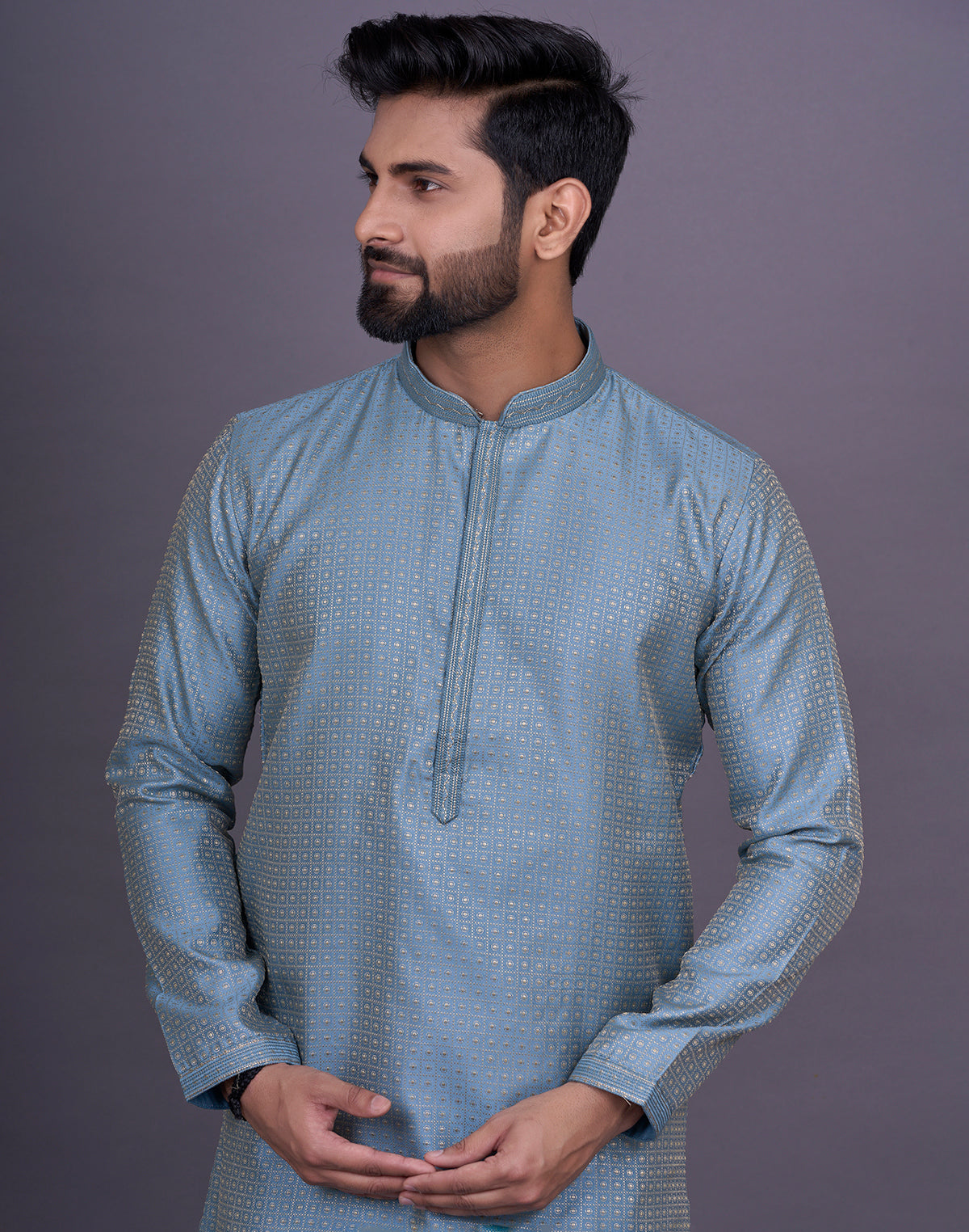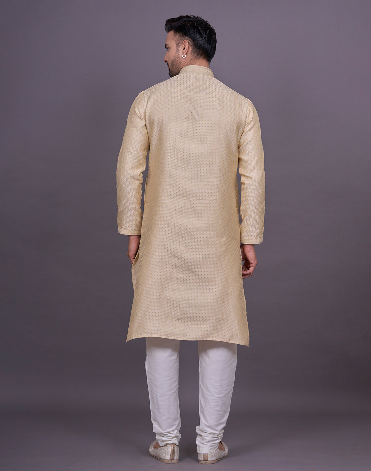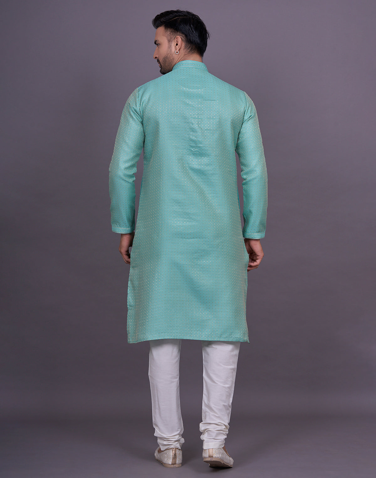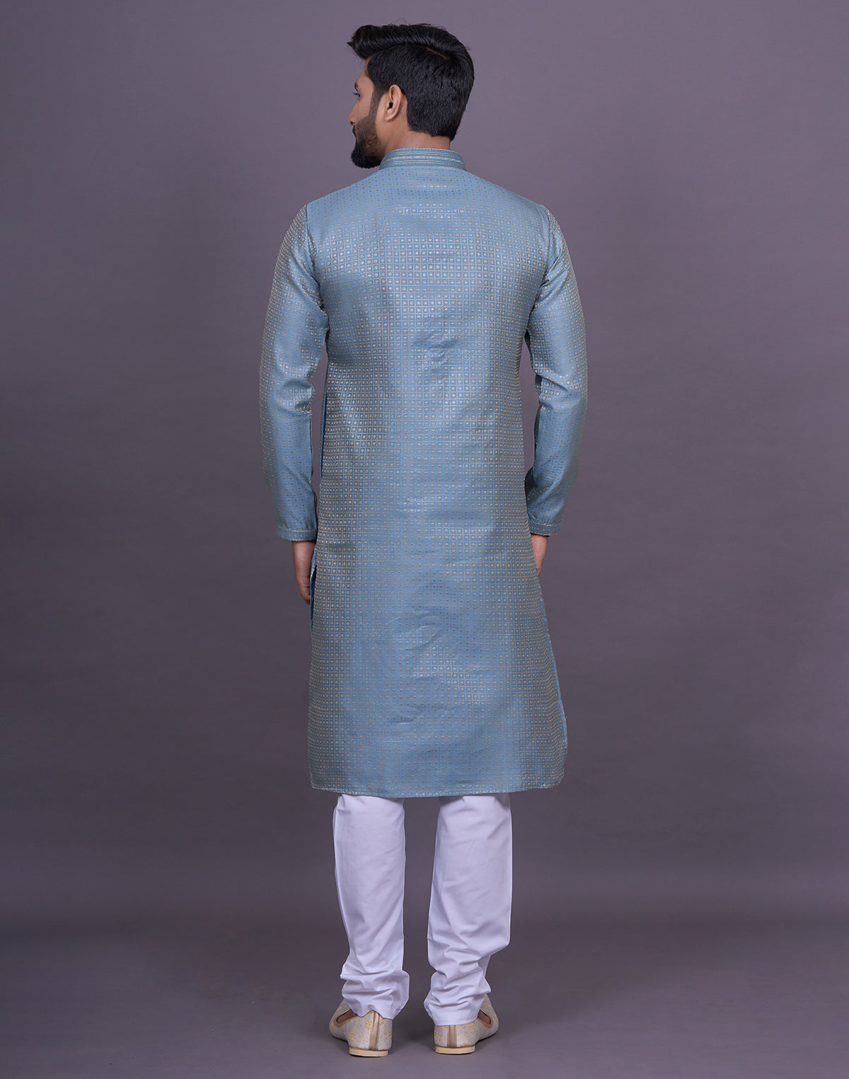 why settle for an ordinary kurta when you can elevate your look with Chekered weaving Jacquard kurta pyjama? This intricate technique adds depth and texture to the fabric, creating a luxurious and eye-catching effect that will surely turn heads.