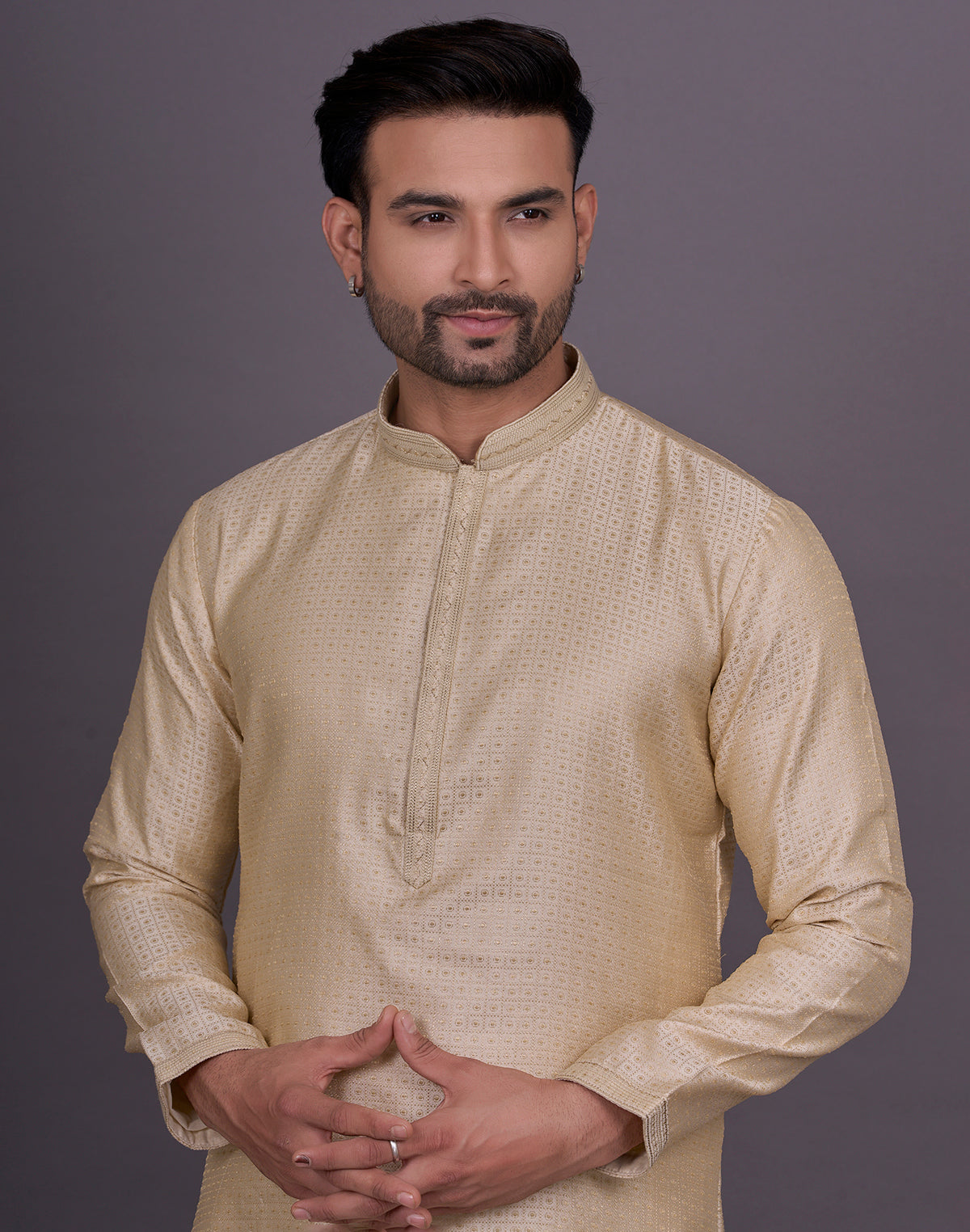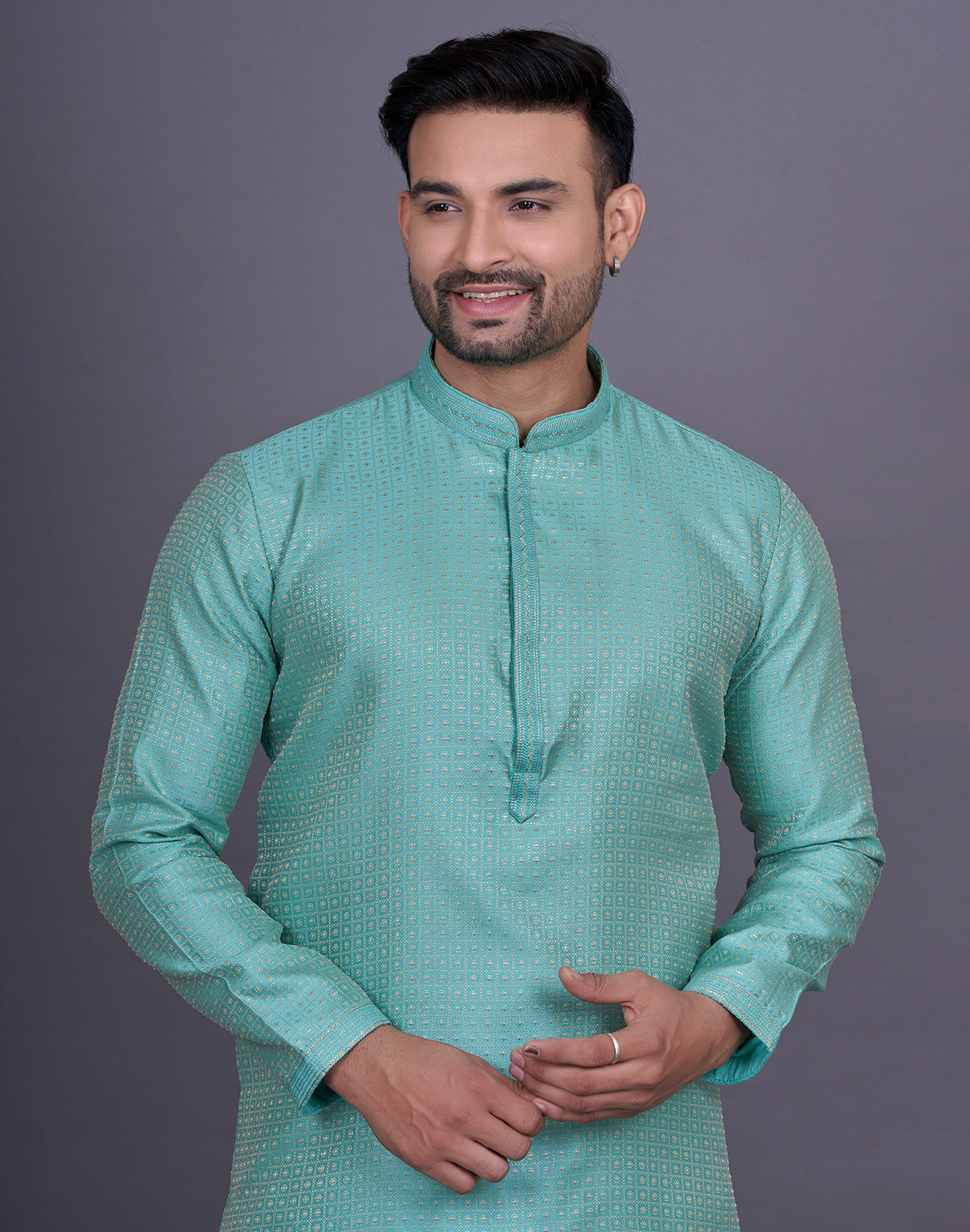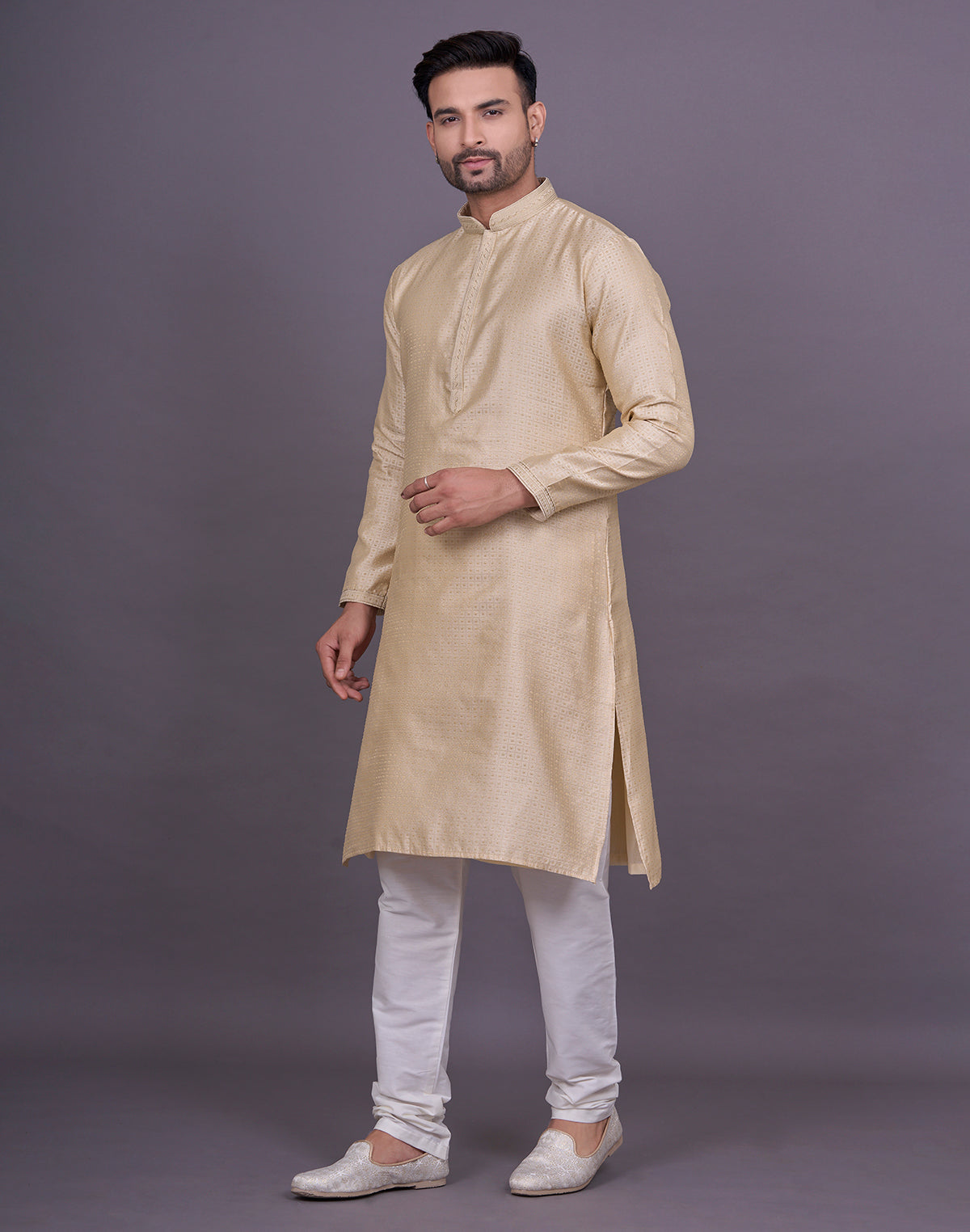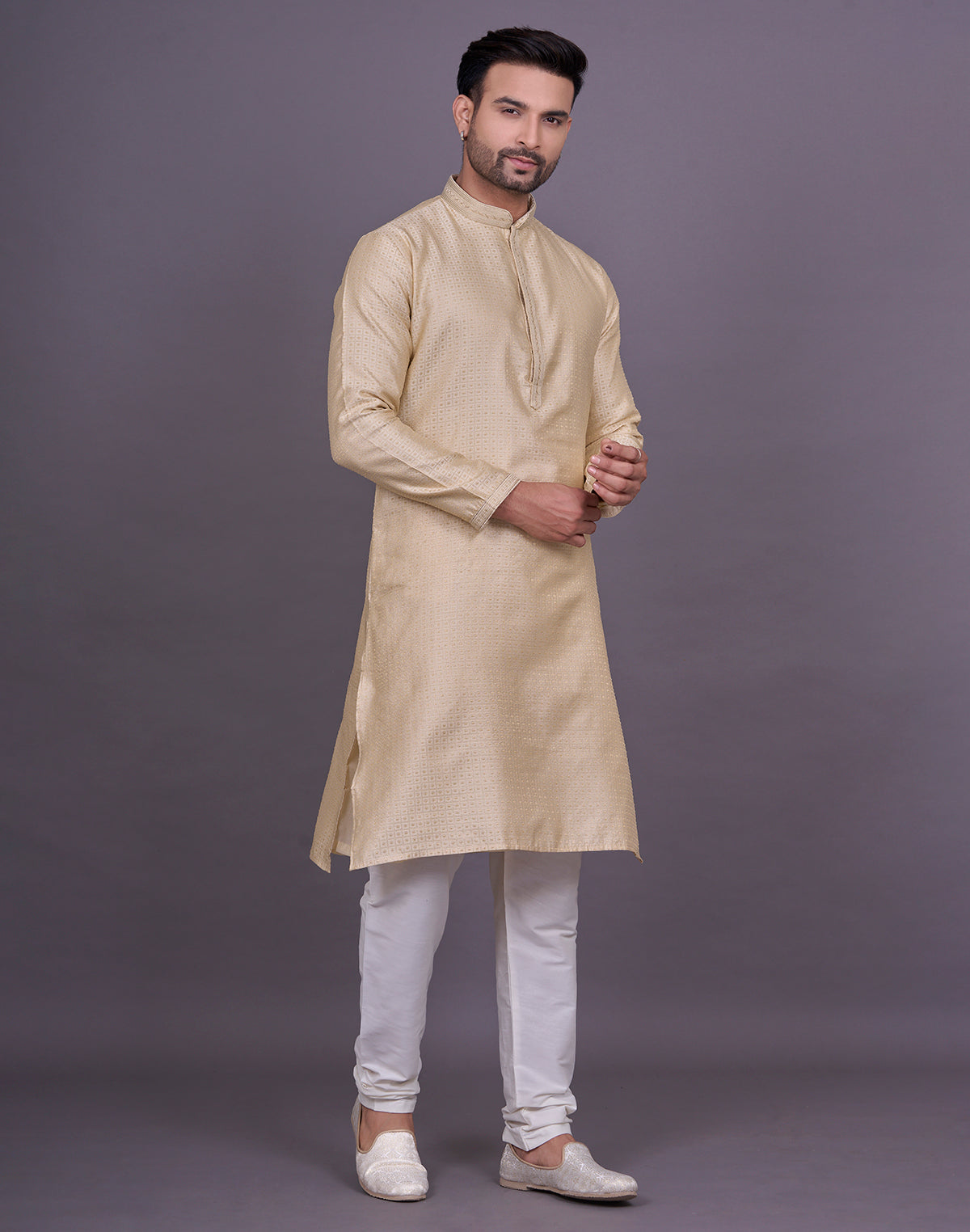 why settle for an ordinary kurta when you can elevate your look with Chekered weaving Jacquard kurta pyjama? This intricate technique adds depth and texture to the fabric, creating a luxurious and eye-catching effect that will surely turn heads.