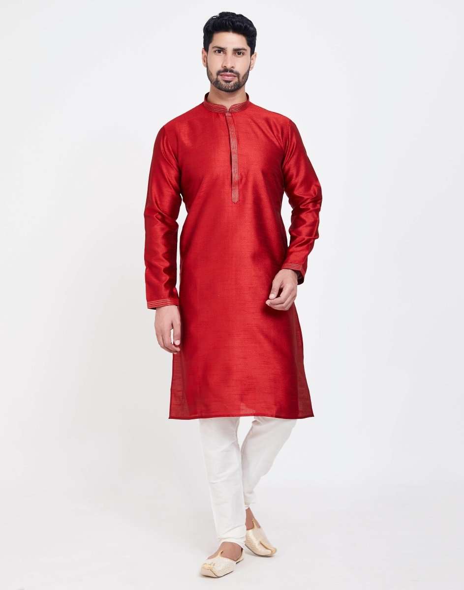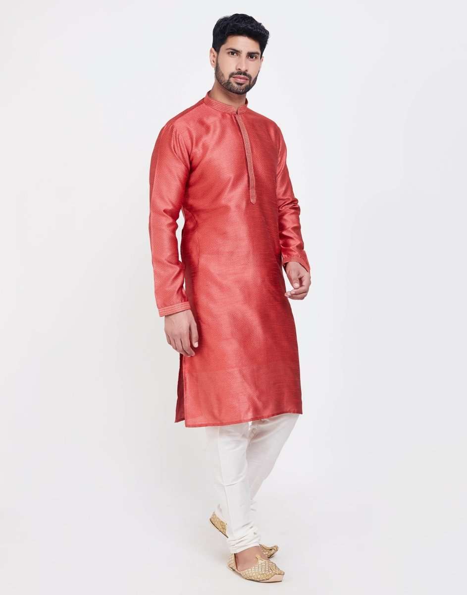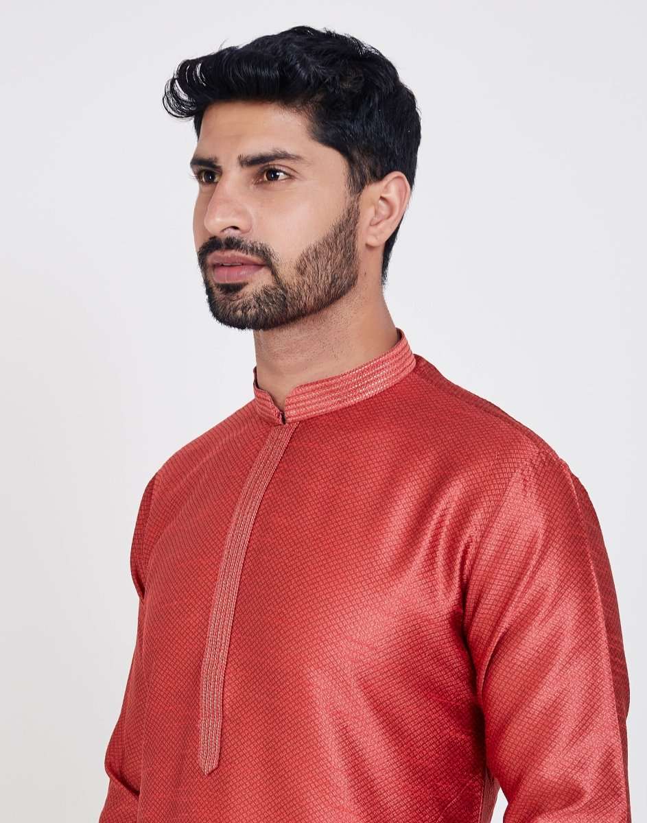 A kurta with texture is a luxurious choice for occasions wear. The self-design on the fabric adds to the overall look of the garment.