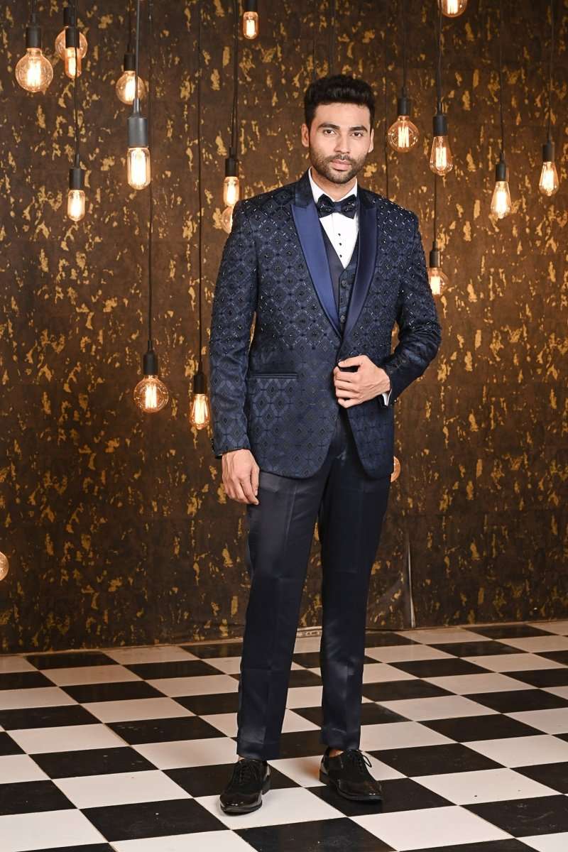 Blue Jacquard Designer Suit