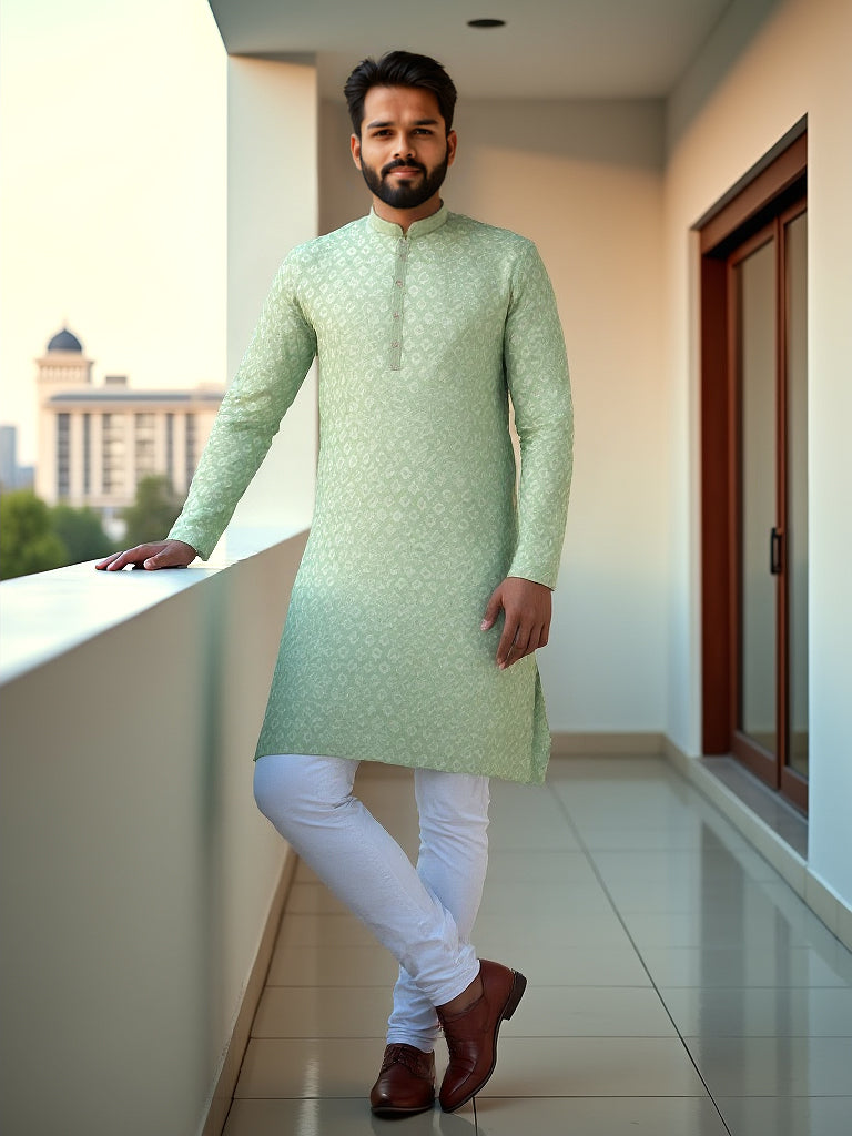 Embrace classic Indian fashion with our Brocade Design Firozi Coloured Jacquard Kurta Pyjama Set. The intricate jacquard weave and vibrant firozi color make this set a must-have for any cultural event. Stay comfortable and stylish all day long in this traditional yet trendy outfit.